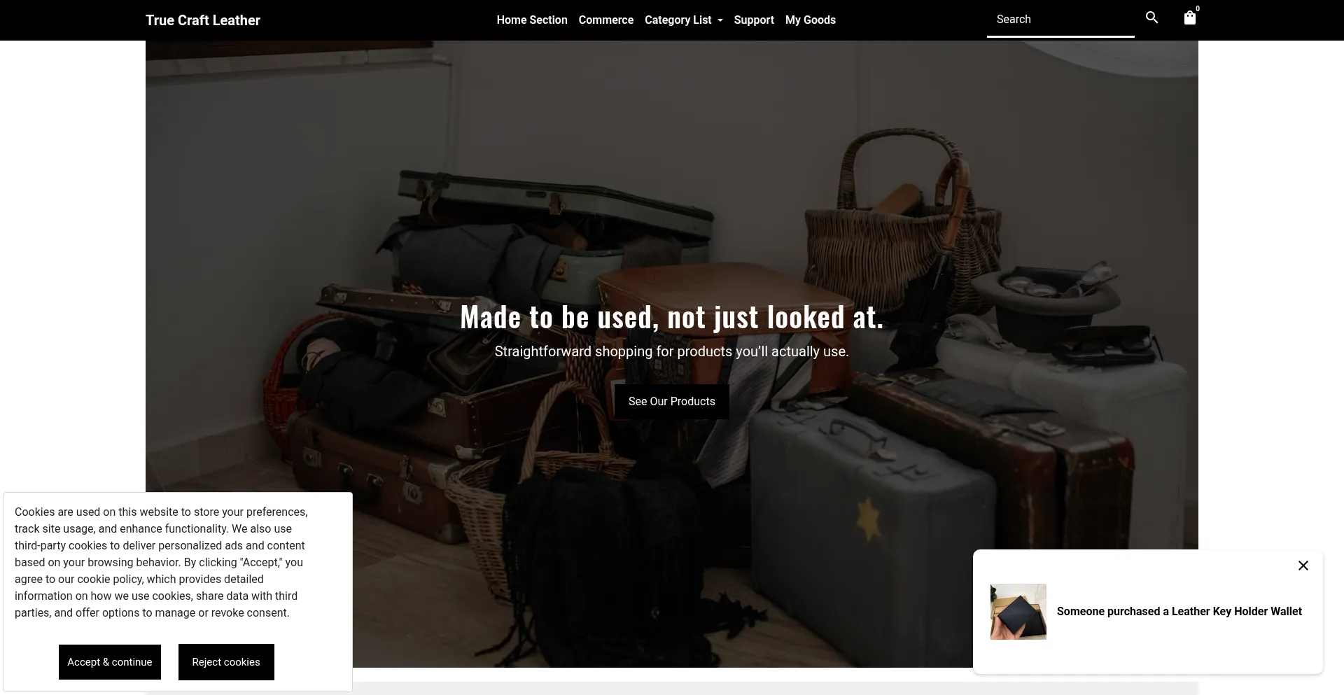 该网站实现符合GDPR或CCPA等隐私法规的cookie同意机制。这表明 truecraftleather.com 遵守数据保护标准并为用户提供对个人数据收集实践的控制。
