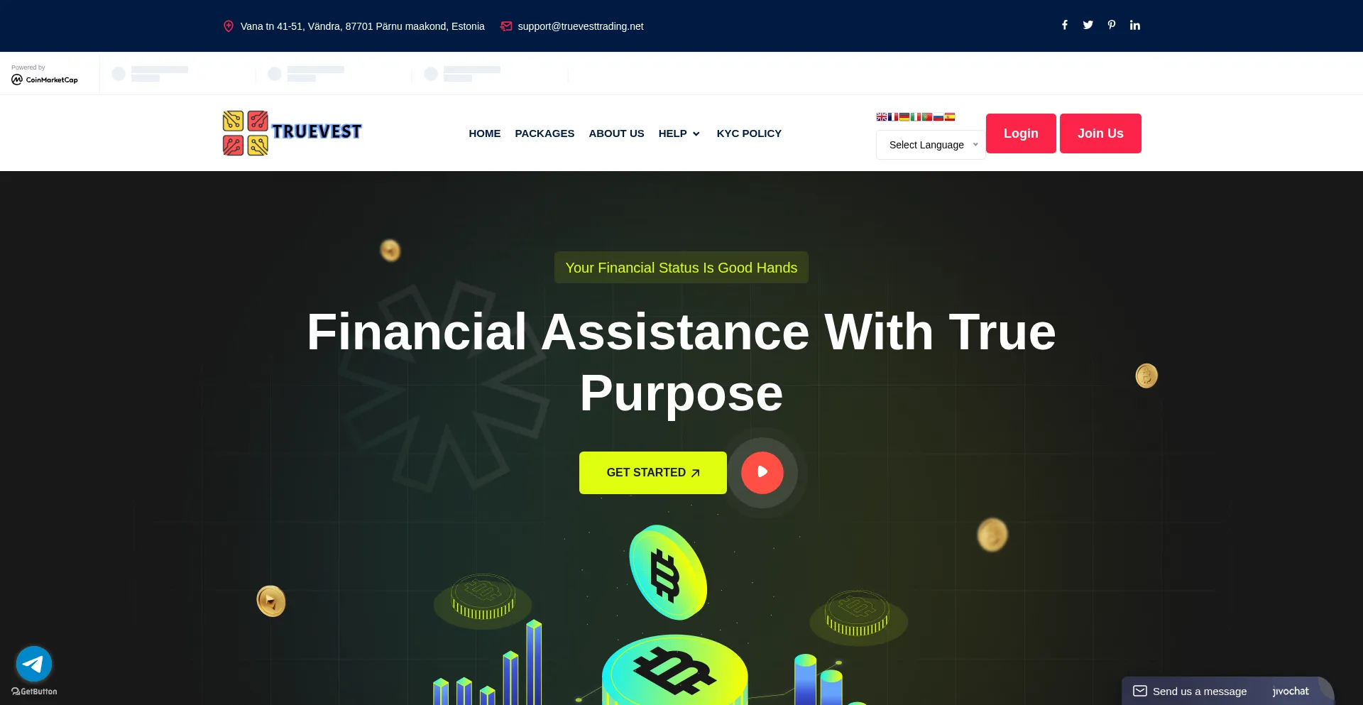 该网站实现数据收集表单,请求个人信息,包括姓名、电子邮件地址、电话号码或其他敏感详细信息。用户应验证 truevesttrading.net 的合法性并在提交个人数据前查看隐私政策。