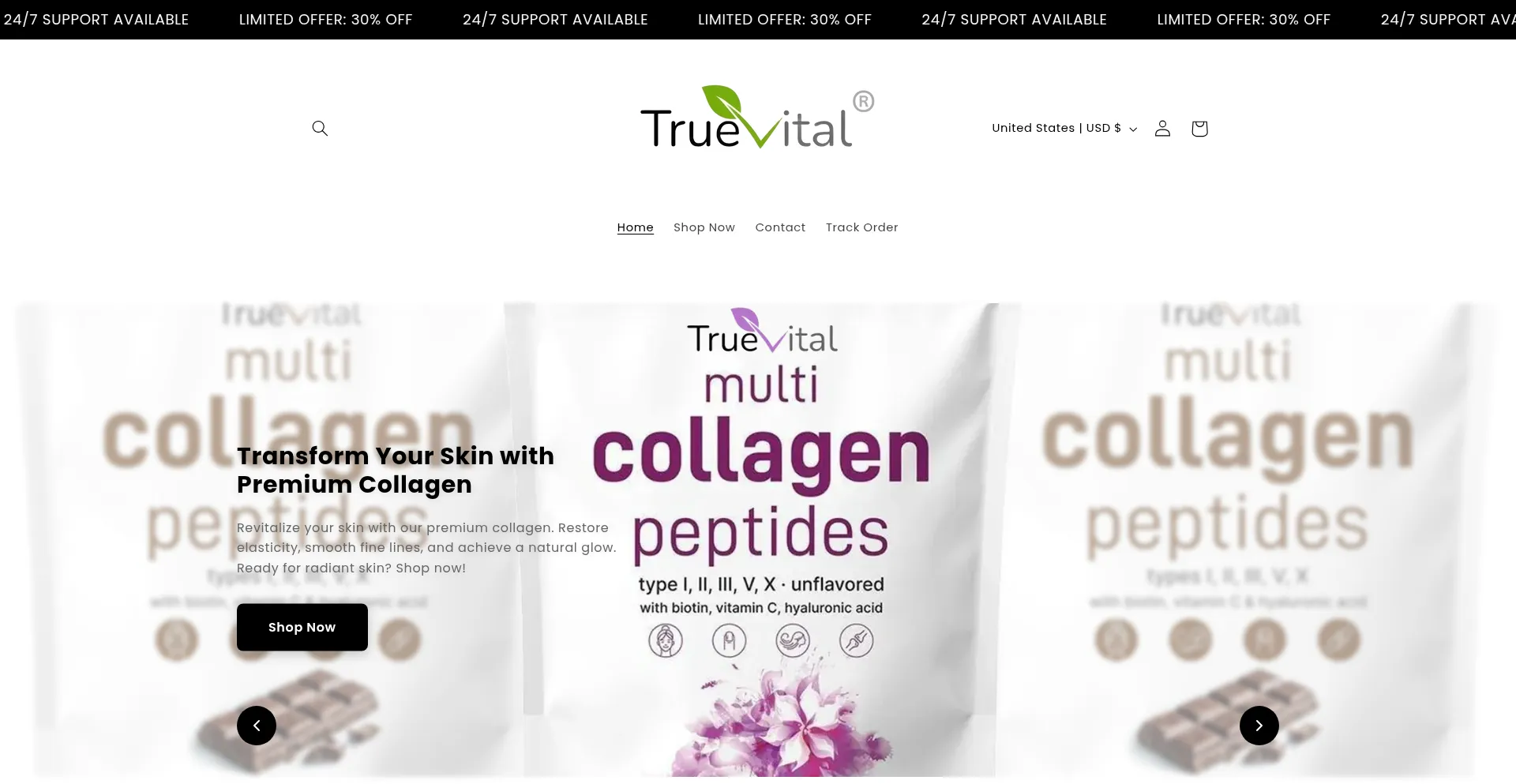 网站 truevitalcollagen.store 使用免费电子商务平台解决方案,这可能表明成本意识运营,但也可能暗示与企业级解决方案相比在安全功能、客户支持或高级功能方面的限制。