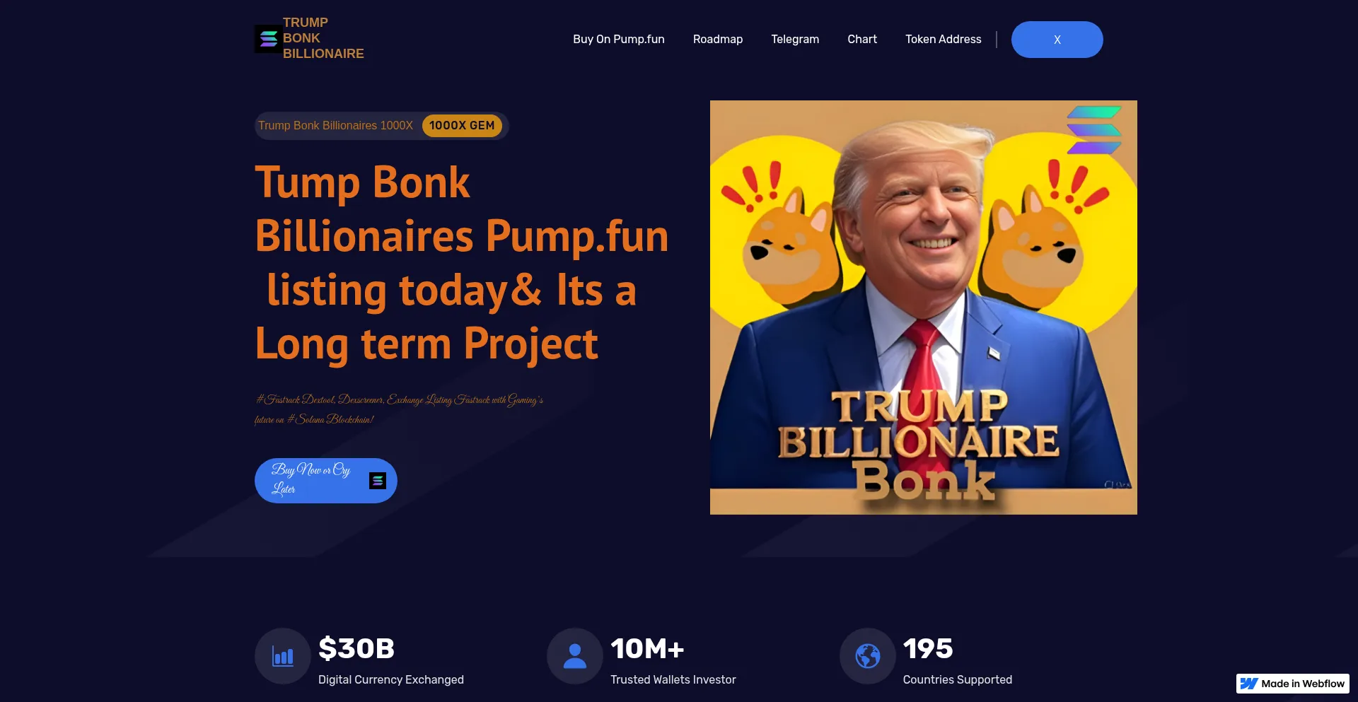 网站 trumpbonkbillionaire.webflow.io 在免费托管基础设施上运营,使用共享资源和子域结构。虽然免费托管对个人项目和开发目的很常见,但由于最小的进入壁垒,它也可能用于临时或可疑活动。