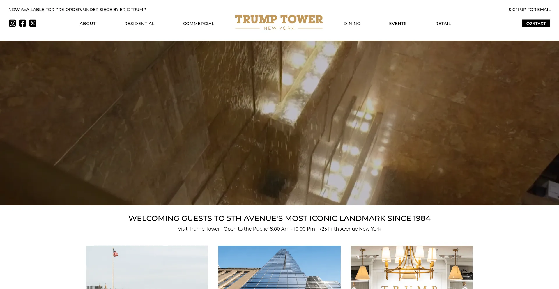 网站上存在社交媒体链接表明 trumptowerny.com 在社交媒体上维护官方账户,这是可信度和参与度的积极信号。