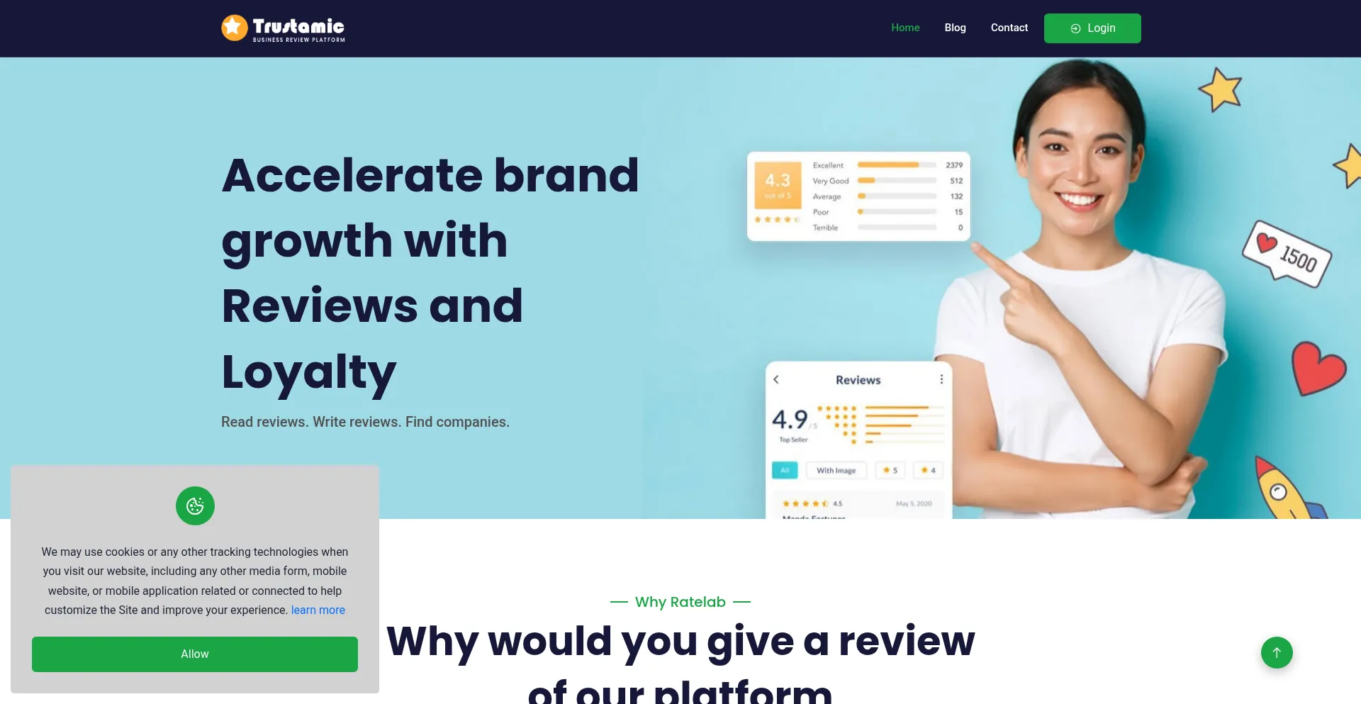 RateLab is a business review platform. Lorem ipsum dolor sit amet consectetur adipisicing elit. Eligendi dolorem itaque laudantium aut, quibusdam amet, nemo quaerat, fuga facere...