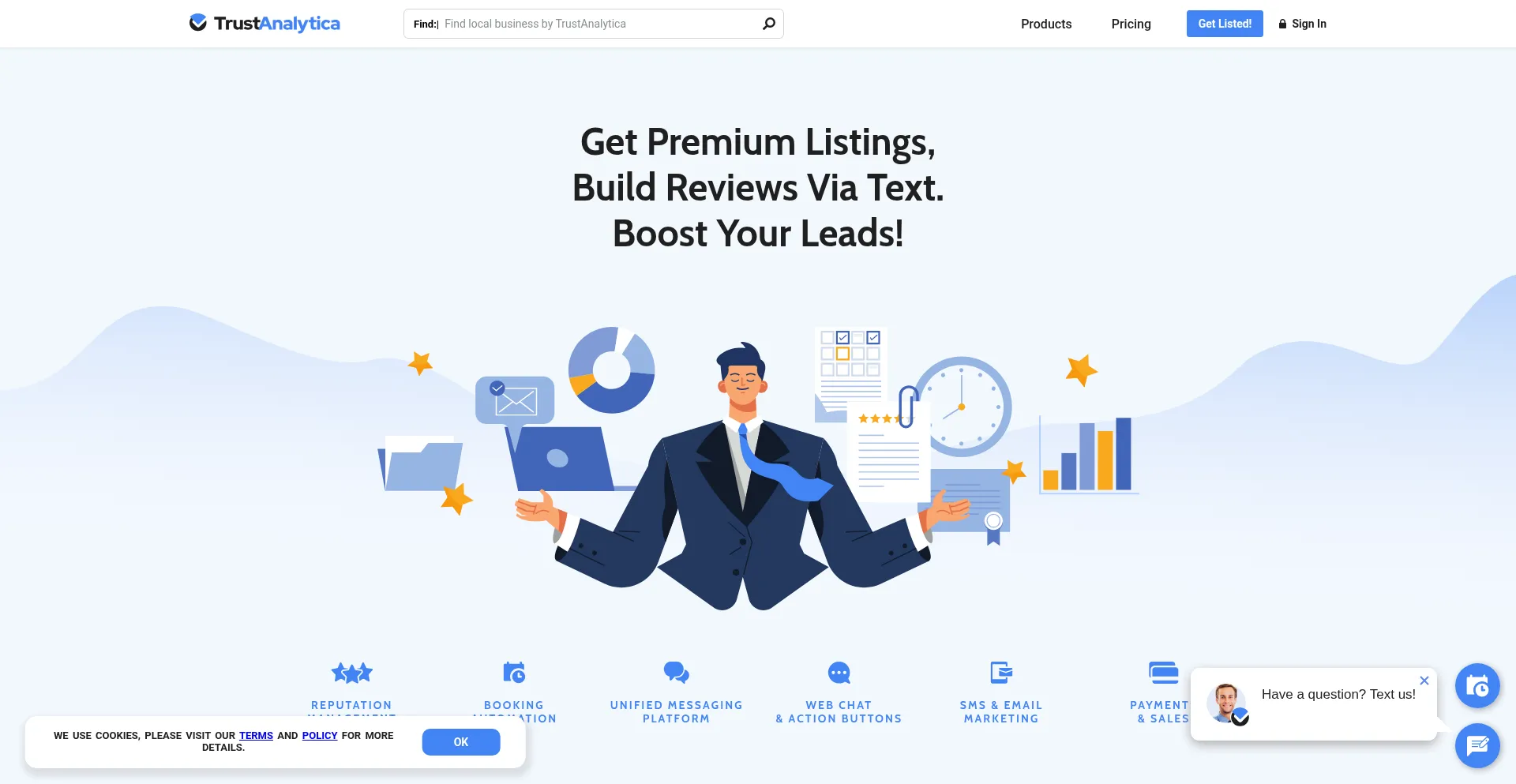 Trust Analytica: Textable review requests, Premium Listings, Build new reviews
