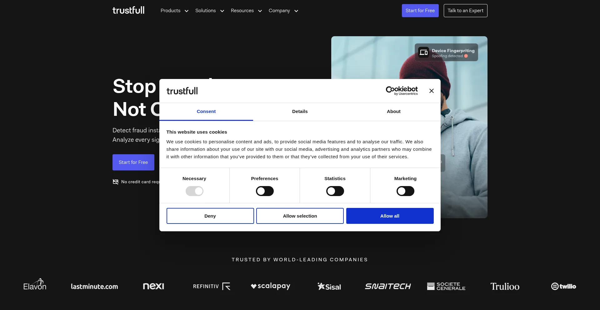 Trustfull enables frictionless fraud prevention by assessing user risk via hundreds of digital signals on phone, email, IP, device, browser and domain.
