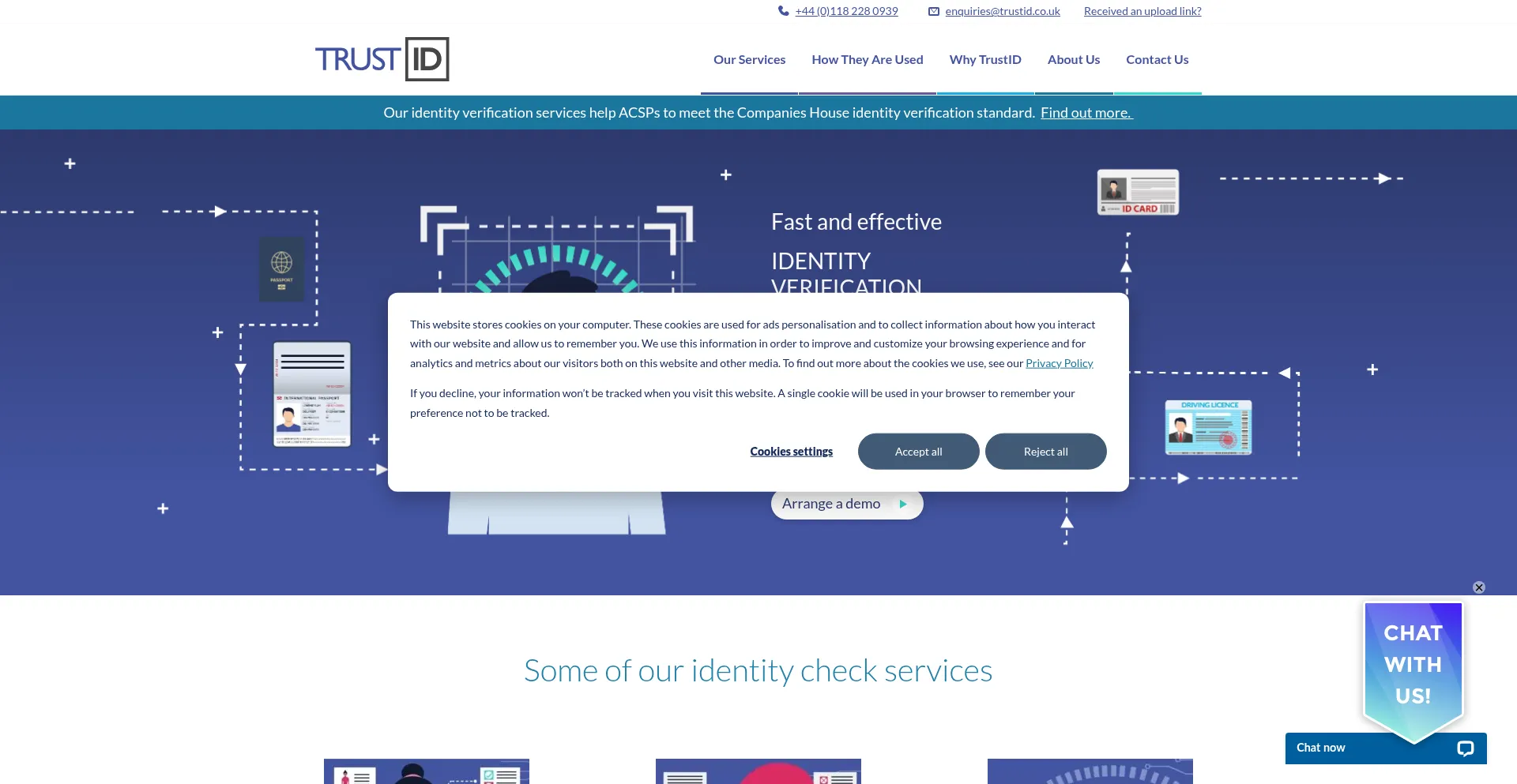 该网站实现符合GDPR或CCPA等隐私法规的cookie同意机制。这表明 trustid.co.uk 遵守数据保护标准并为用户提供对个人数据收集实践的控制。