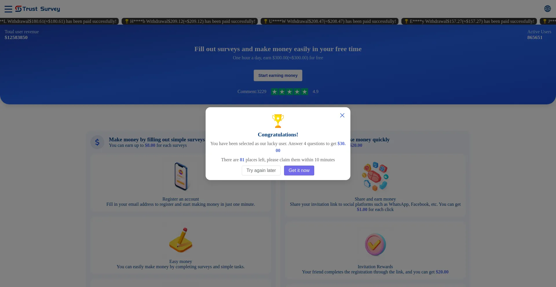 帮助保护他人,快在社交媒体上分享此页面吧!知道trustosurvey.top的人越多,骗子就越难得逞。 通过在社交媒体上分享此页面,帮助更多人发现可靠的trustosurvey.top吧!