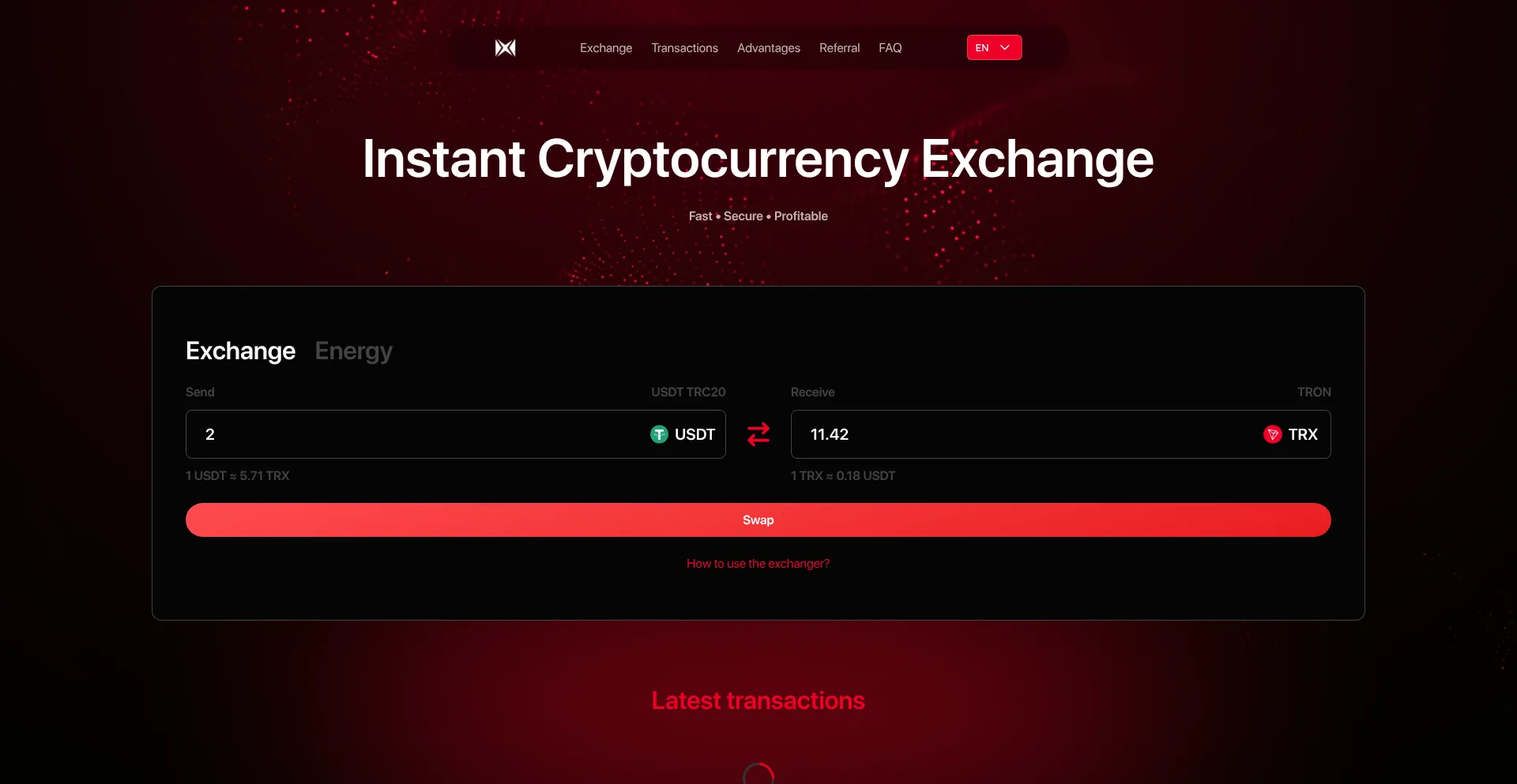 Fast, secure, and profitable cryptocurrency exchange. Exchange TRX to USDT and buy TRON energy in seconds.