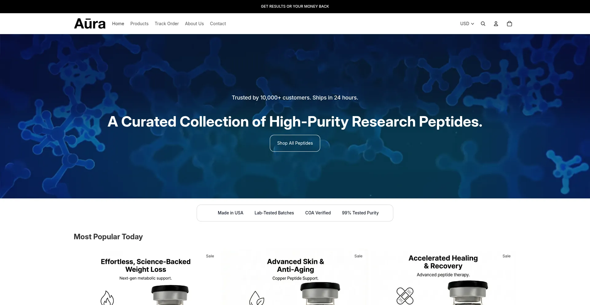 Aūra Peptides offers premium, research-grade peptides for laboratory and educational use. Lab-tested quality, fast shipping, and the latest compounds for advanced researchers.