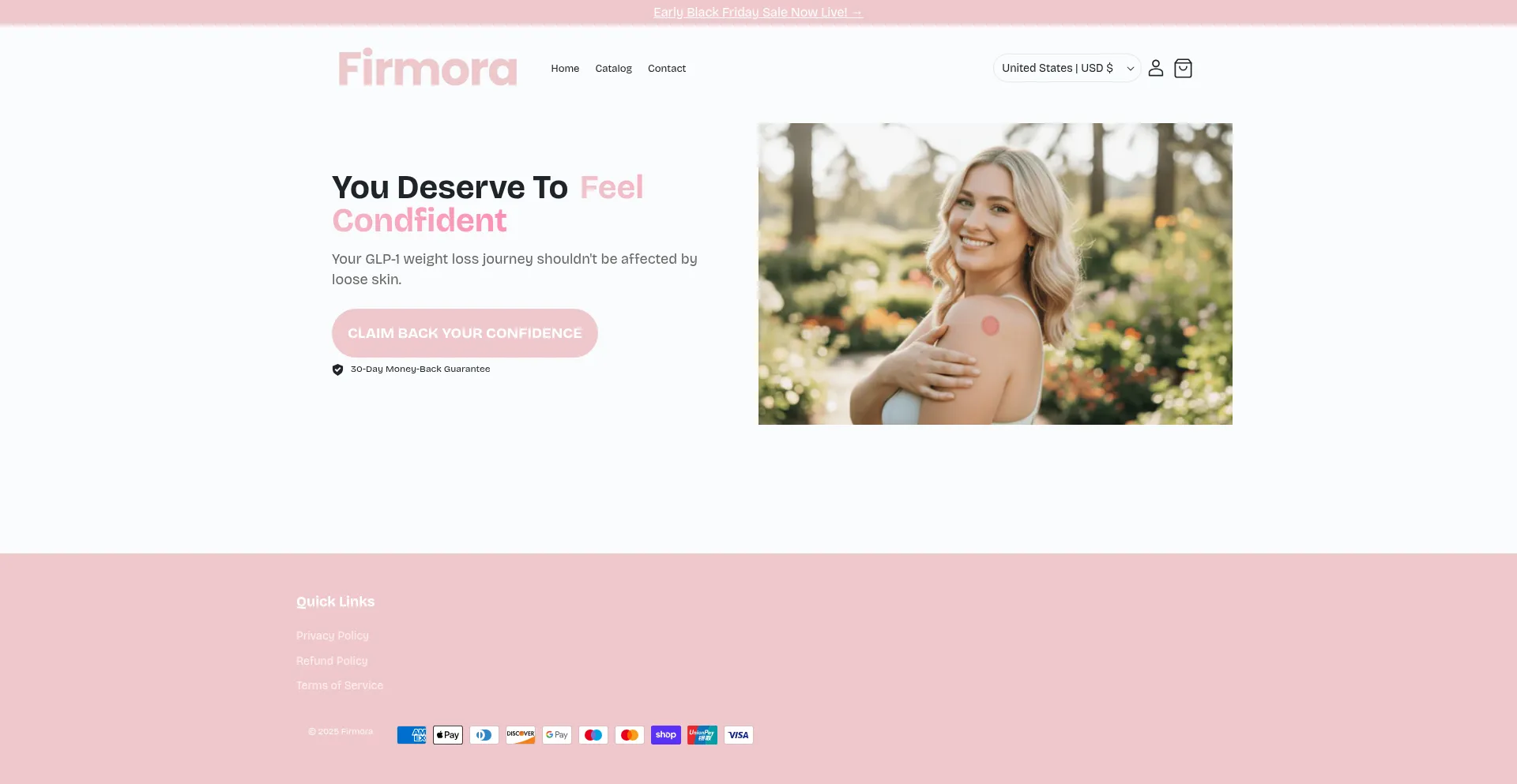 分析表明 tryfirmora.com 作为电子商务平台运营,促进商品或服务的在线交易。该网站实现了购物车功能、支付处理系统和产品目录功能,这些是商业零售运营的典型特征。