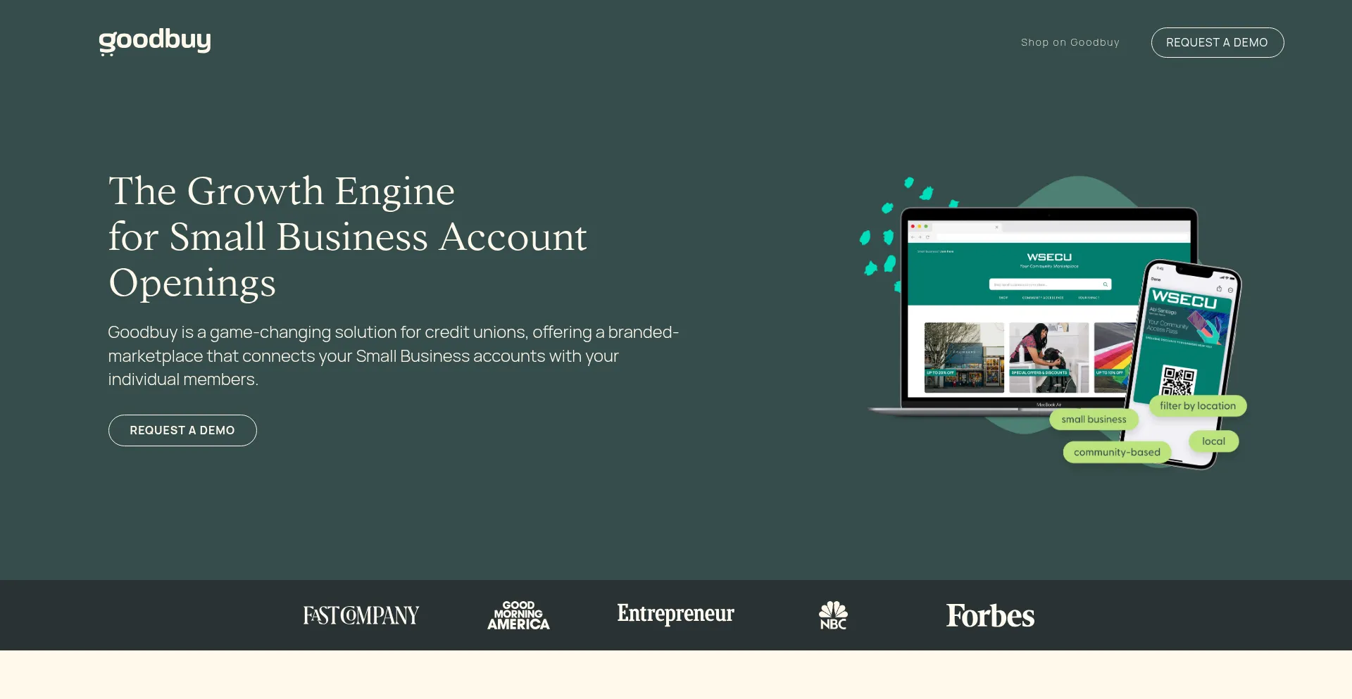 Goodbuy is a game-changing solution for credit unions, accelerating new SMB account openings while growing existing relationships. Its credit union-branded marketplace—online ...