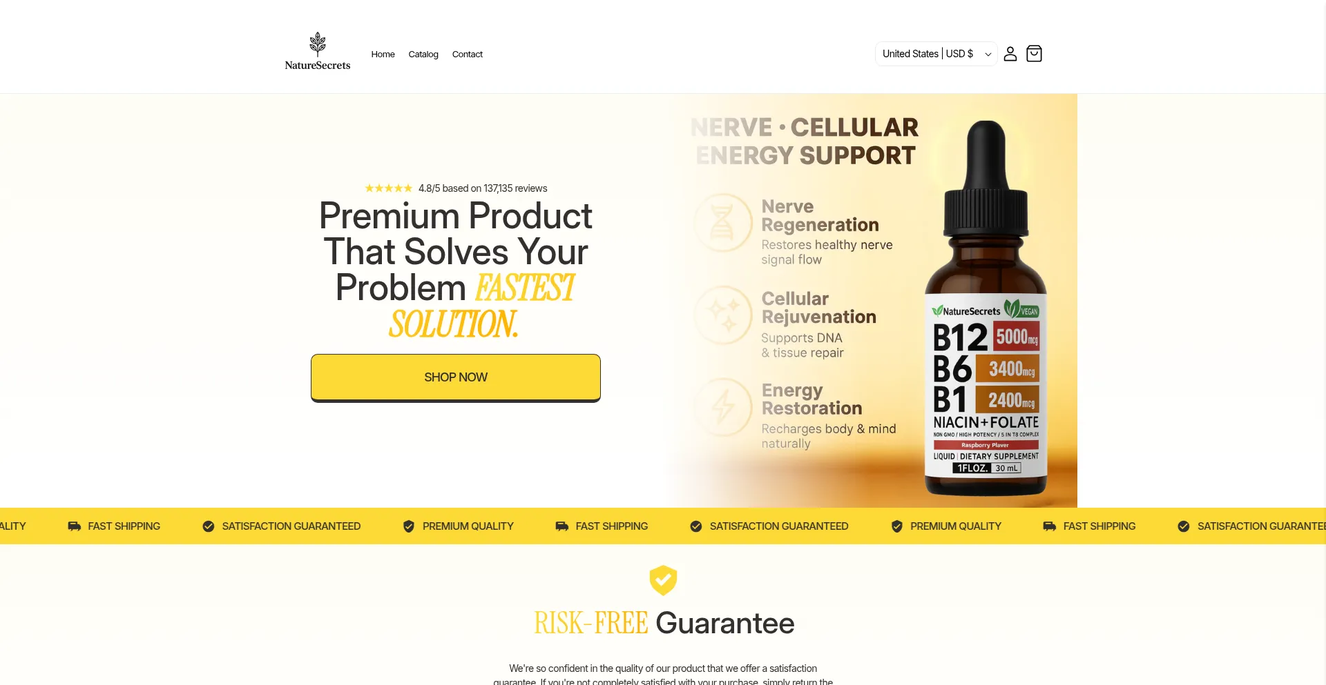 分析表明 trynaturesecrets.com 作为电子商务平台运营,促进商品或服务的在线交易。该网站实现了购物车功能、支付处理系统和产品目录功能,这些是商业零售运营的典型特征。