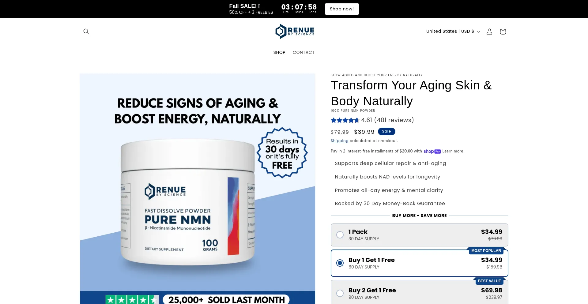 分析表明 tryrenuebysci.com 作为电子商务平台运营,促进商品或服务的在线交易。该网站实现了购物车功能、支付处理系统和产品目录功能,这些是商业零售运营的典型特征。