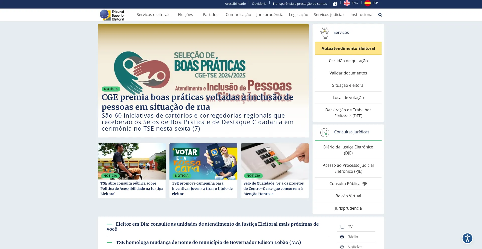 网站上存在社交媒体链接表明 tse.jus.br 在社交媒体上维护官方账户,这是可信度和参与度的积极信号。