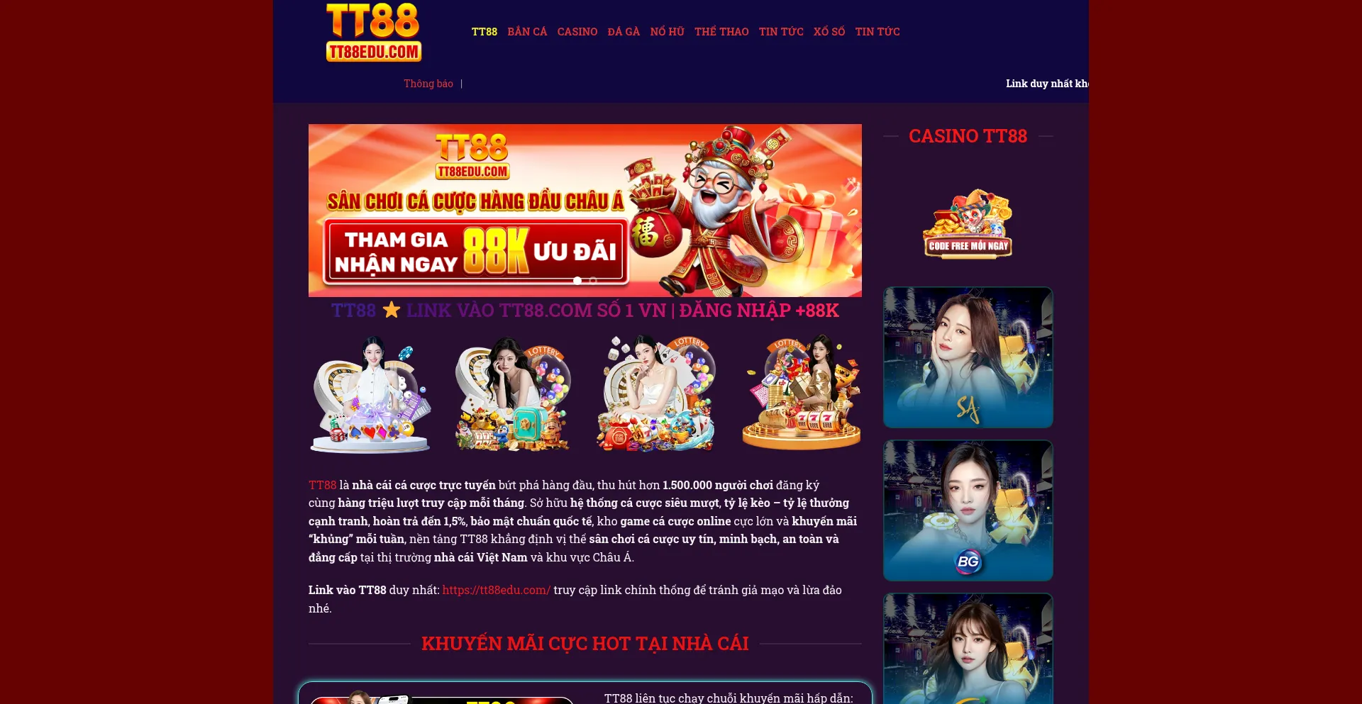 TT88 là nhà cái cá cược trực tuyến bứt phá hàng đầu, thu hút hơn 1.500.000 người chơi đăng ký cùng hàng triệu lượt truy cập mỗi tháng...
