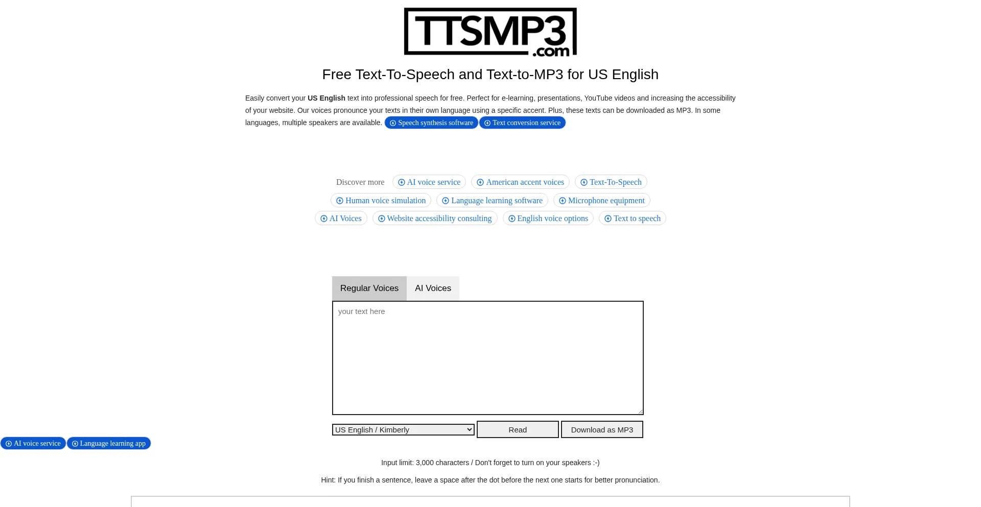 Easily convert text to natural US English voice and 50+ languages/accents for free. Listen online or download as MP3.