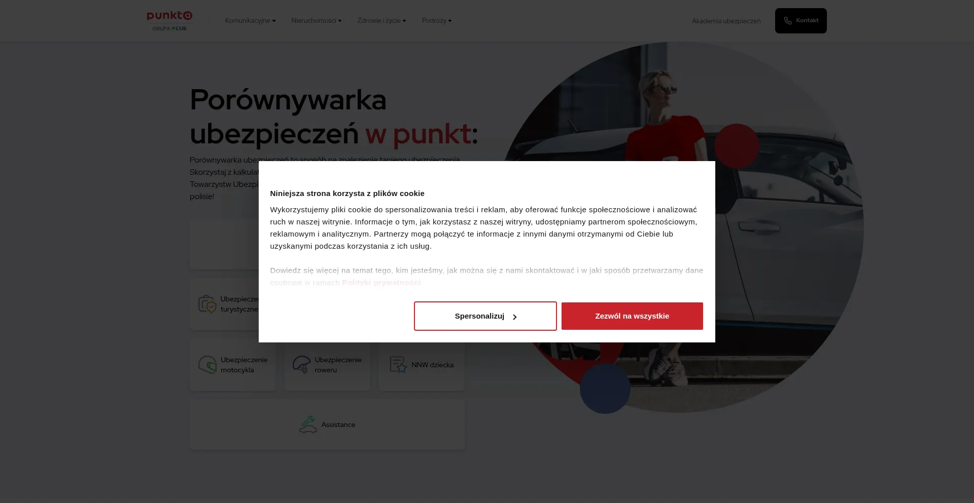 Porównaj ceny oraz zakres ubezpieczenia OC/AC samochodu, zdrowotnego, turystycznego i nieruchomości. Oszczędź na ubezpieczeniu z porównywarką Punkta!