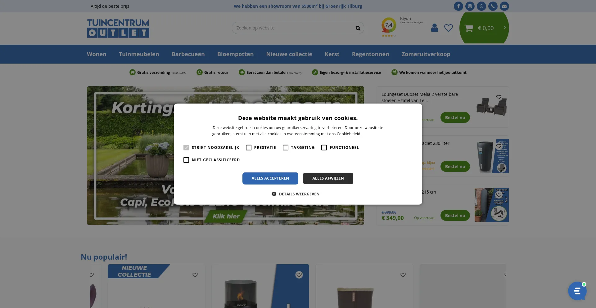 该网站实现符合GDPR或CCPA等隐私法规的cookie同意机制。这表明 tuincentrumoutlet.com 遵守数据保护标准并为用户提供对个人数据收集实践的控制。