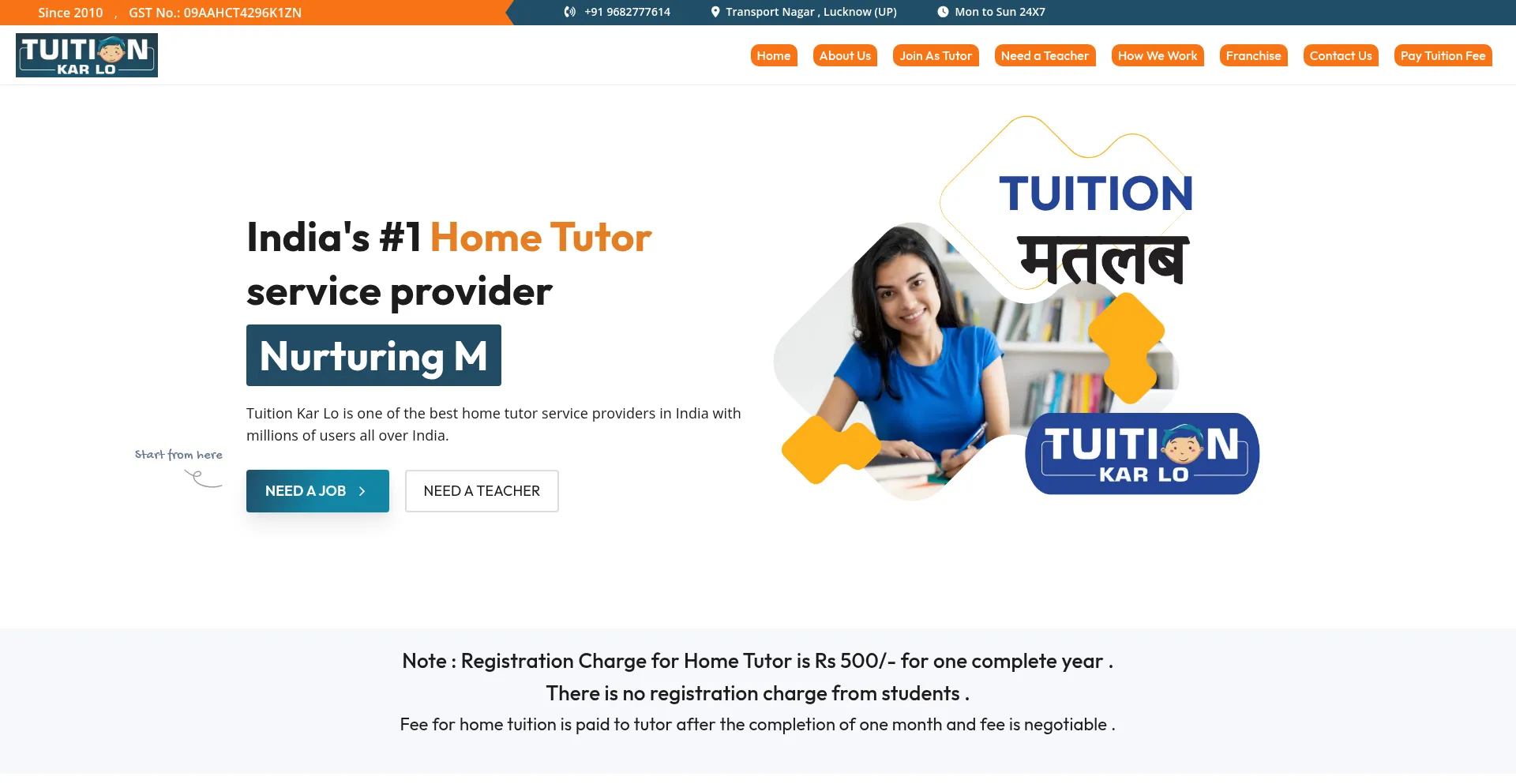 tuitionkarlo.com 提供 Android 设备移动应用程序,表明平台存在已扩展到网络服务之外。