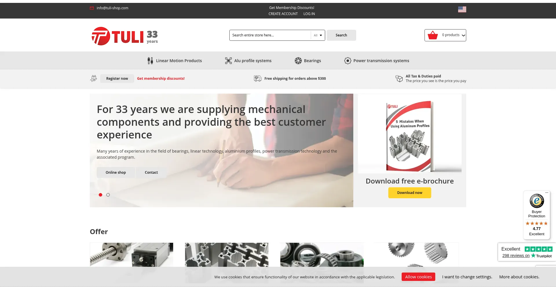 该网站在 Trustpilot 上有良好的评分 (4.8),基于 298 条评价,表明客户的高度信任。