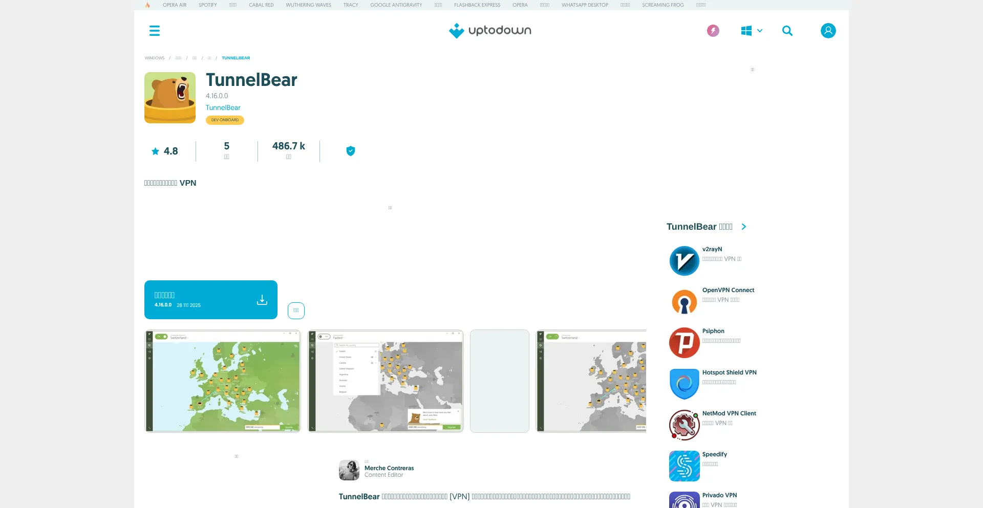 网站上存在社交媒体链接表明 tunnelbear.cn.uptodown.com 在社交媒体上维护官方账户,这是可信度和参与度的积极信号。