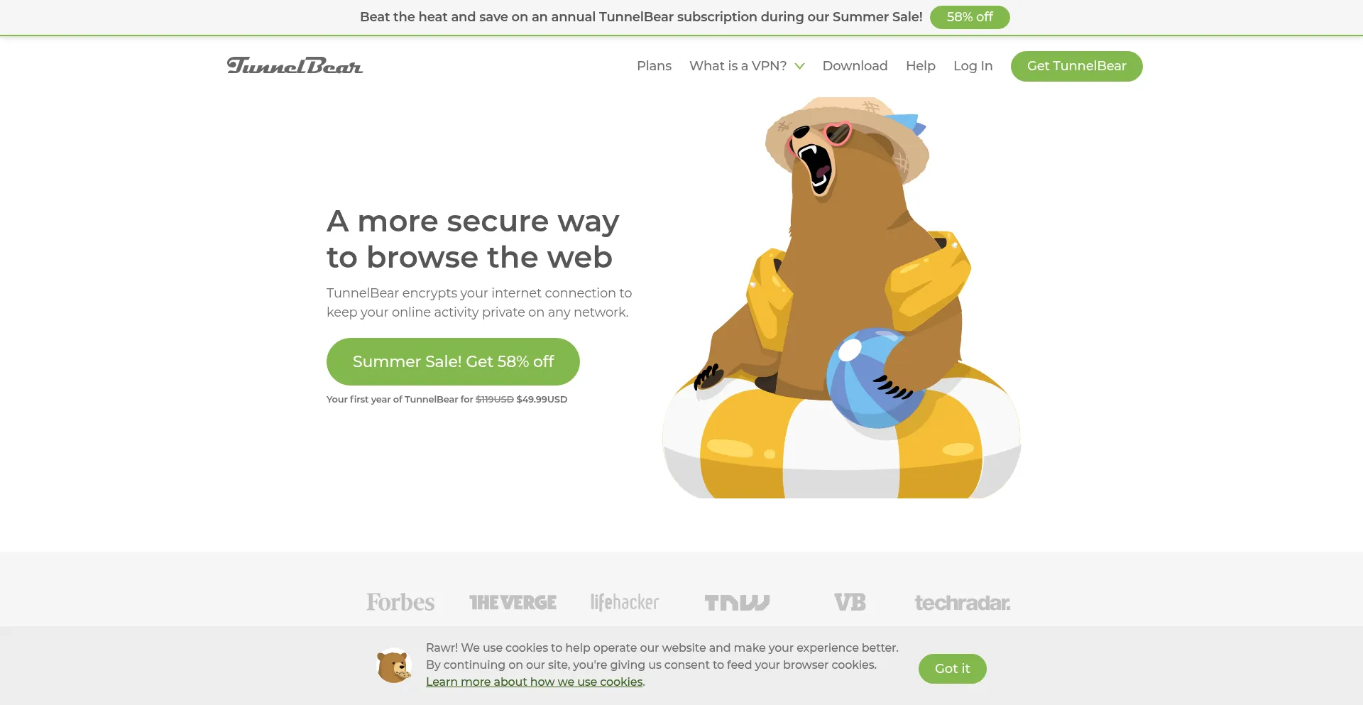 该网站实现符合GDPR或CCPA等隐私法规的cookie同意机制。这表明 tunnelbear.com 遵守数据保护标准并为用户提供对个人数据收集实践的控制。