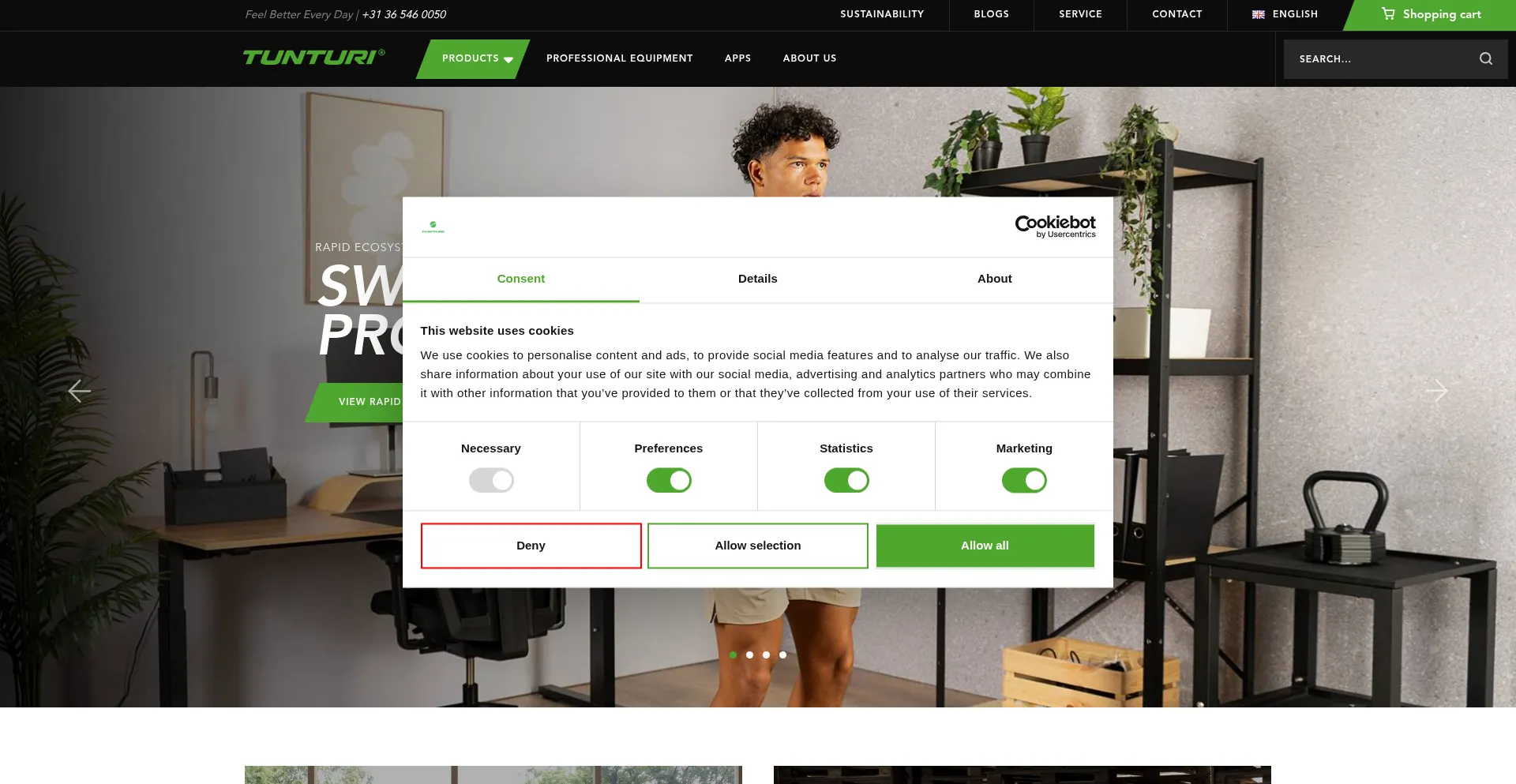 该网站实现符合GDPR或CCPA等隐私法规的cookie同意机制。这表明 tunturi.com 遵守数据保护标准并为用户提供对个人数据收集实践的控制。