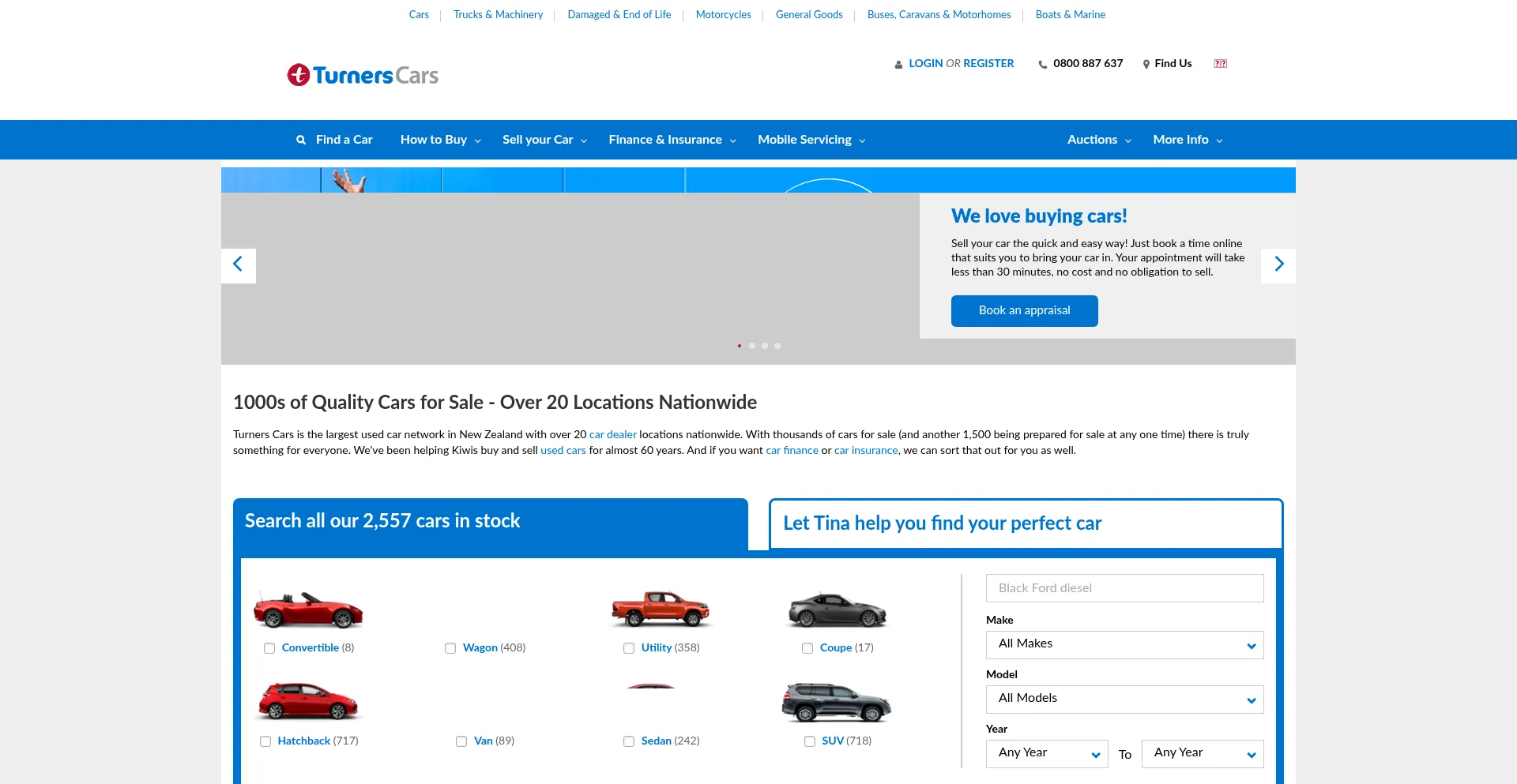 Turners is NZ’s Largest Used Car Dealer Network with nearly 3,000 cars on sale. Turners - Helping Kiwis buy and sell cars for almost 60 years.