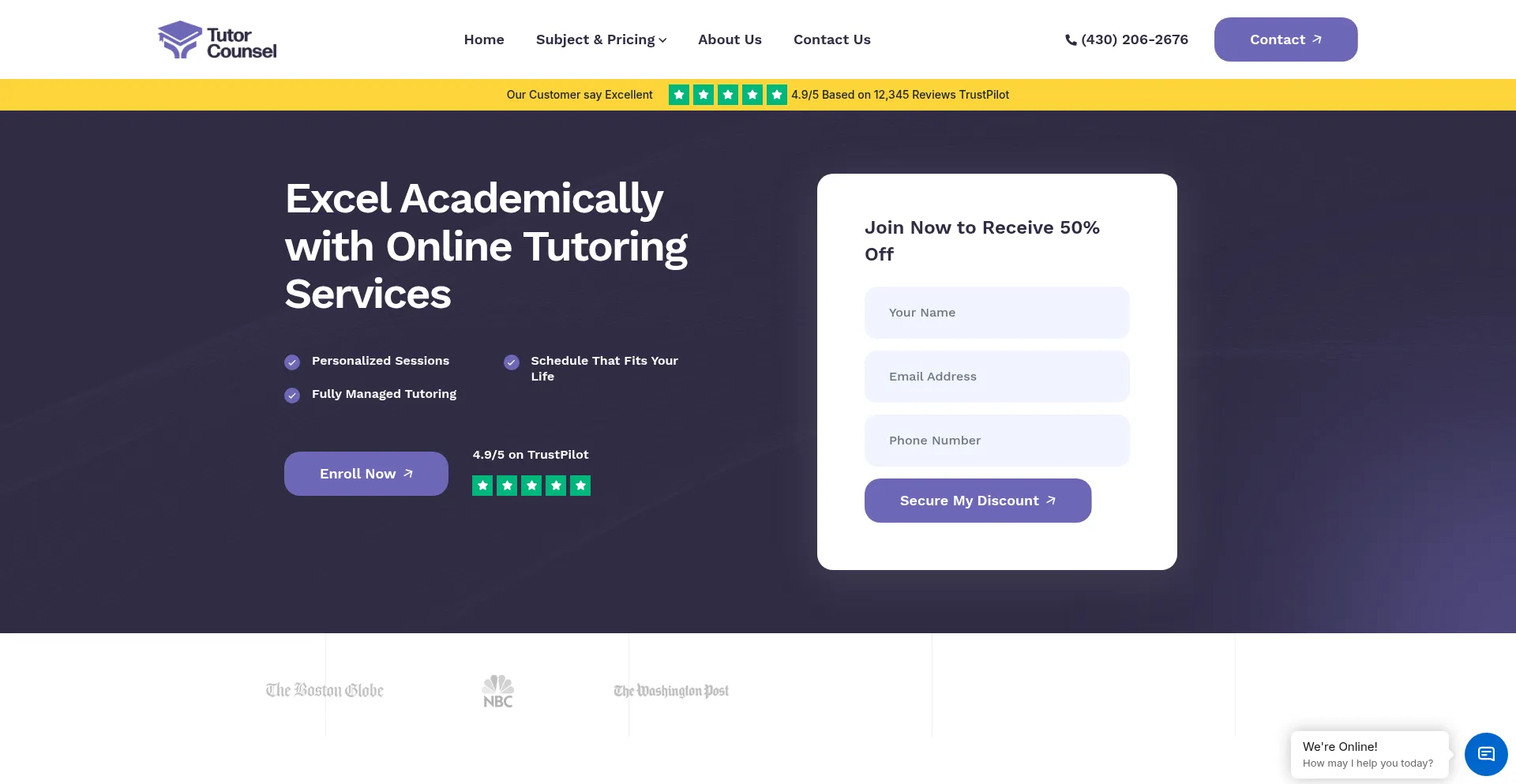 tutorcounsel.com 使用 Bootstrap,这是一个广泛采用的开源响应式网页开发框架。Bootstrap 通过标准化组件和样式实现移动友好界面的高效创建。