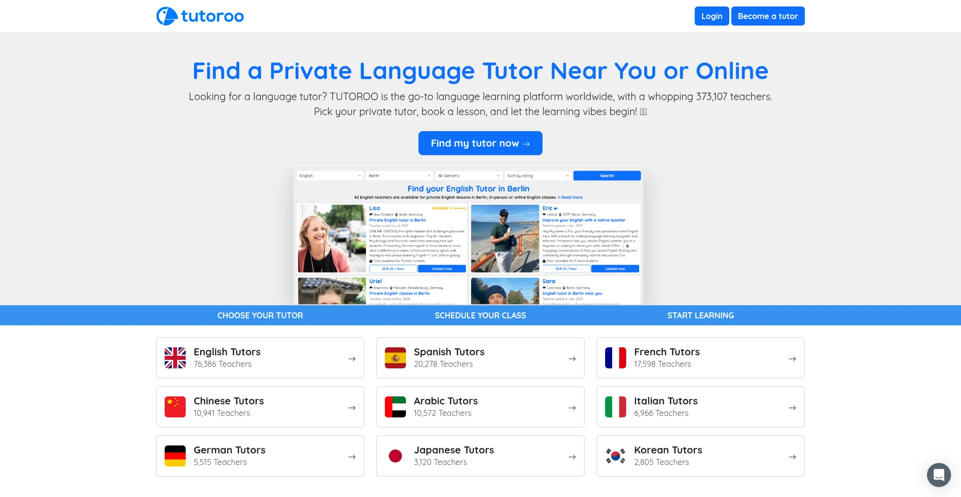 Looking for a language tutor? TUTOROO is the go-to language learning platform worldwide, with a whopping 373,107 teachers.
