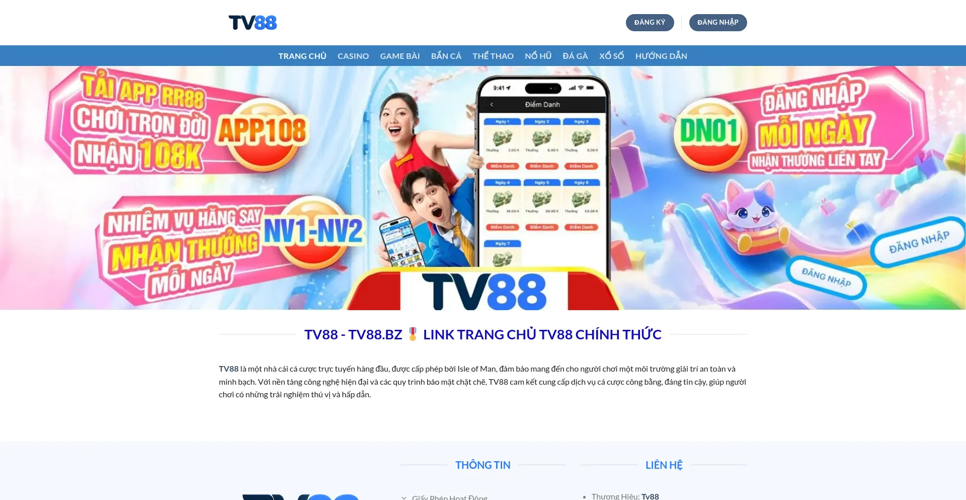 TV88 là một nhà cái cá cược trực tuyến hàng đầu, được cấp phép bởi Isle of Man, đảm bảo mang đến cho người chơi một môi trường giải...