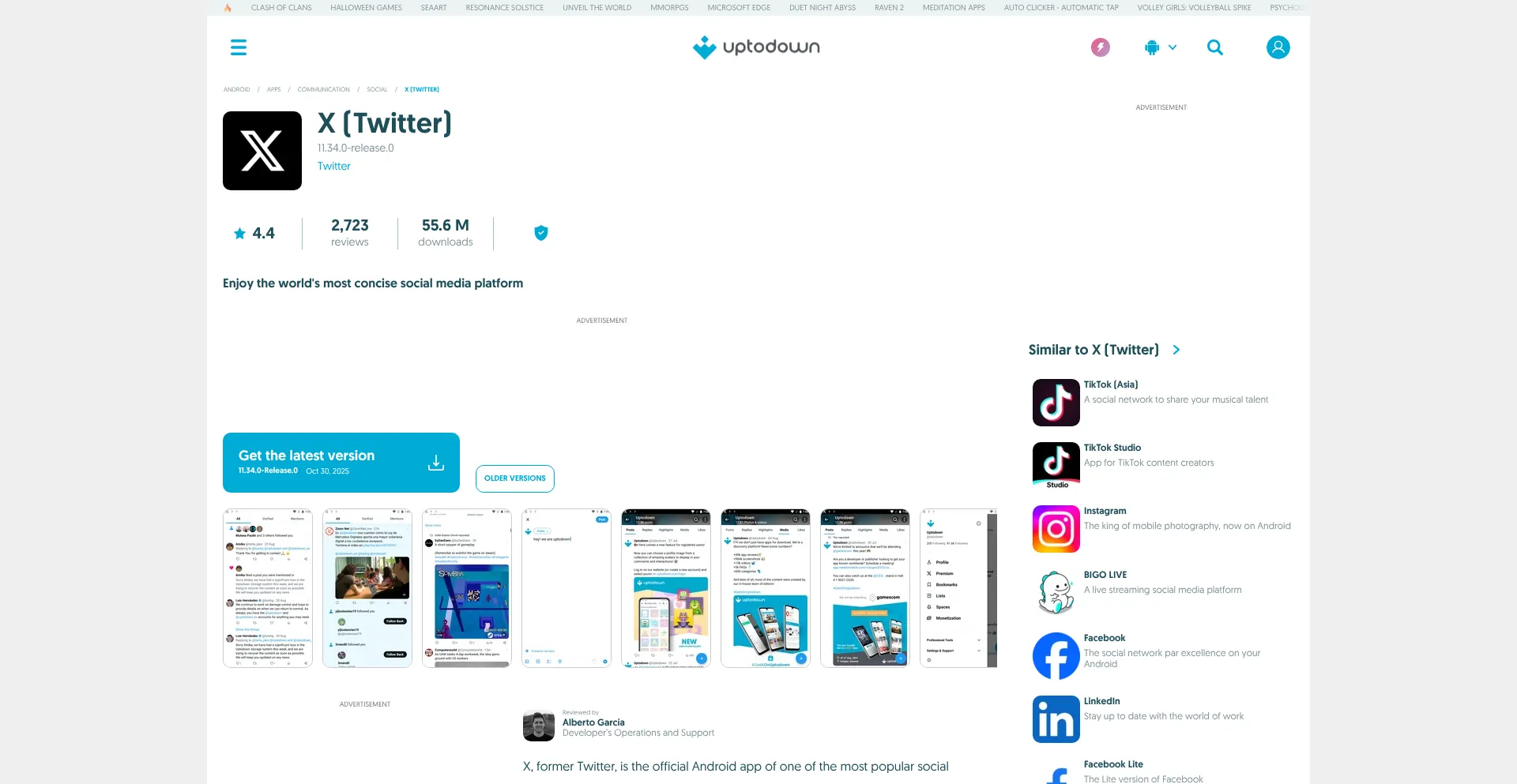 网站上存在社交媒体链接表明 twitter.en.uptodown.com 在社交媒体上维护官方账户,这是可信度和参与度的积极信号。