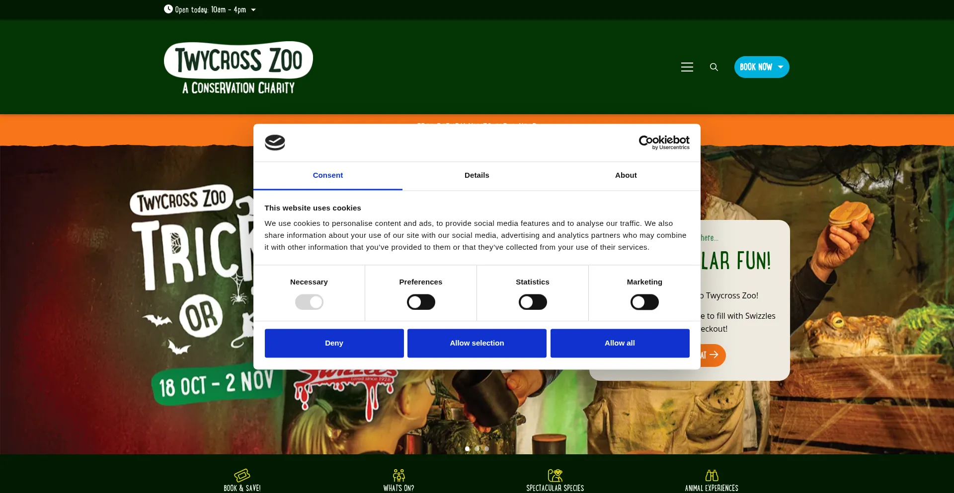 该网站实现符合GDPR或CCPA等隐私法规的cookie同意机制。这表明 twycrosszoo.org 遵守数据保护标准并为用户提供对个人数据收集实践的控制。