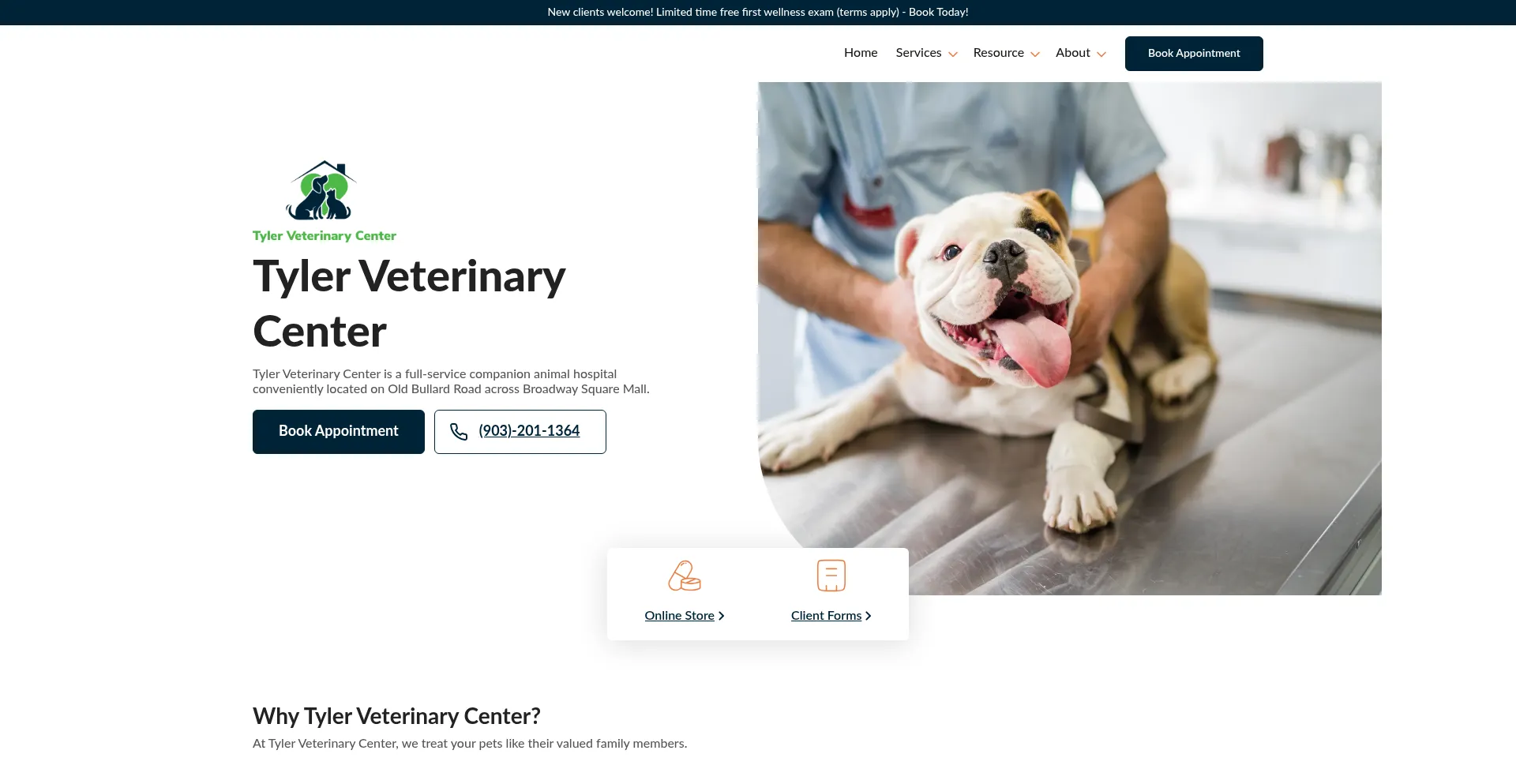 tylervetcenter.com 提供 Android 设备移动应用程序,表明平台存在已扩展到网络服务之外。