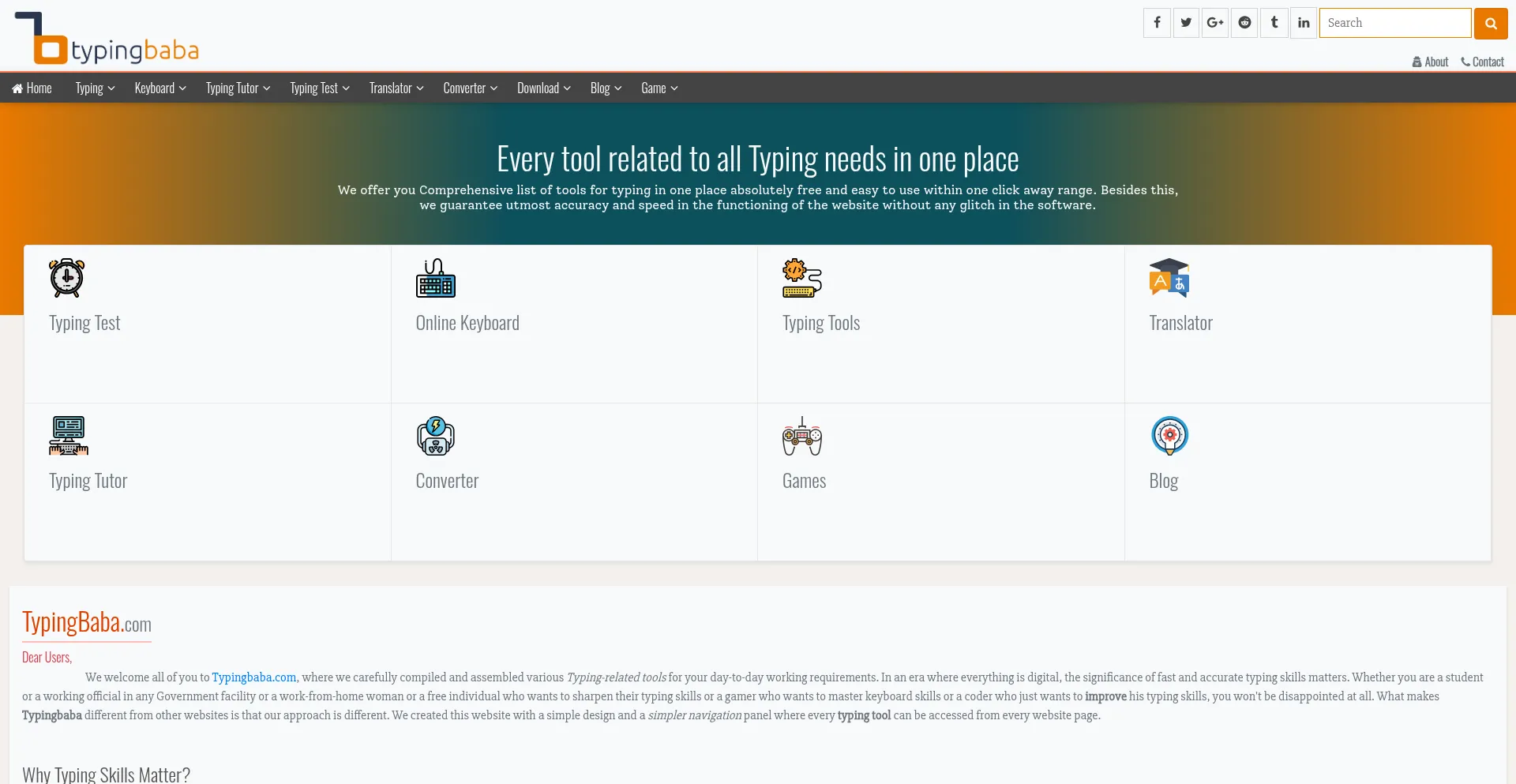 网站上存在社交媒体链接表明 typingbaba.com 在社交媒体上维护官方账户,这是可信度和参与度的积极信号。