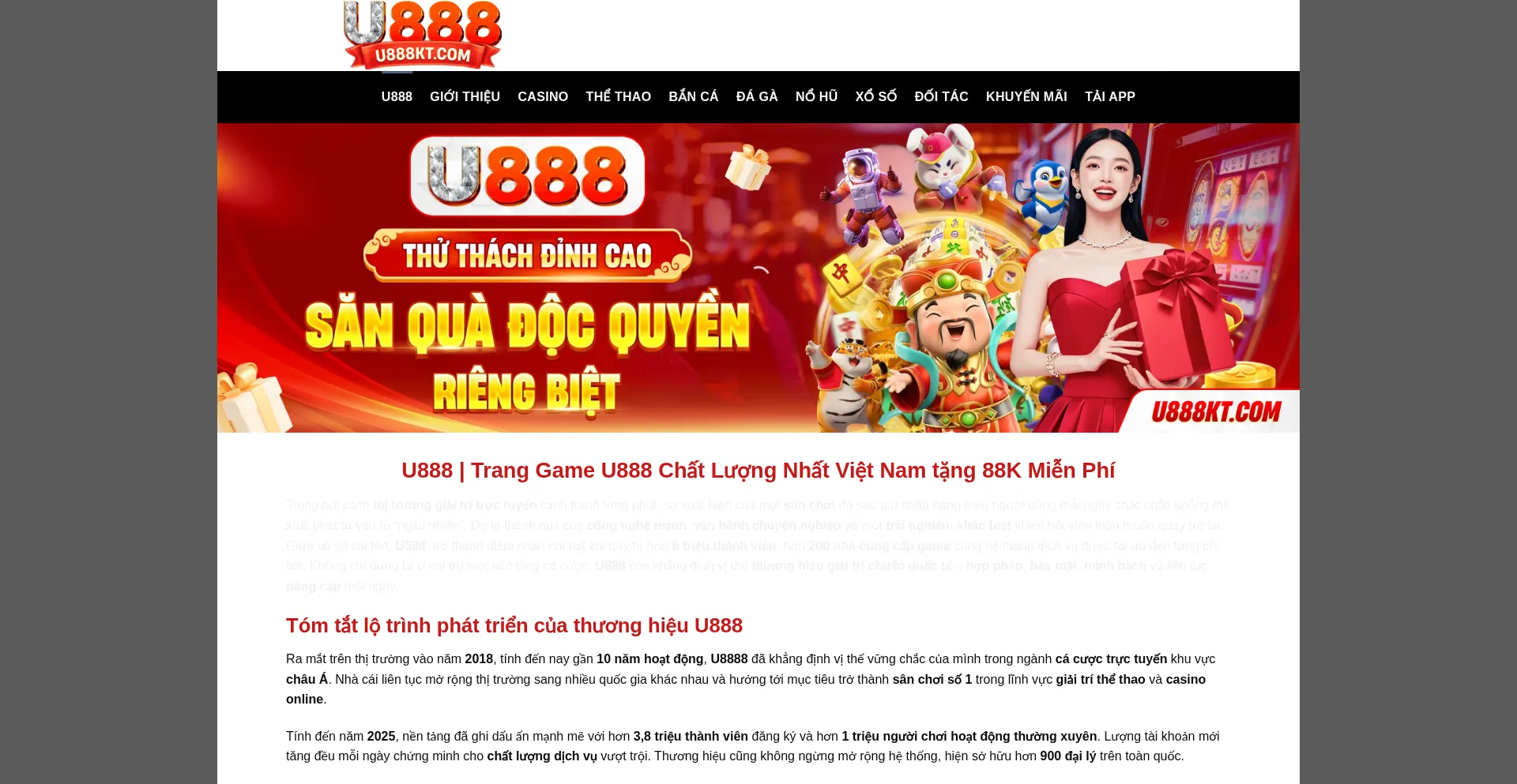 U888 | Trang Game U888 Chất Lượng Nhất Việt Nam tặng 88K