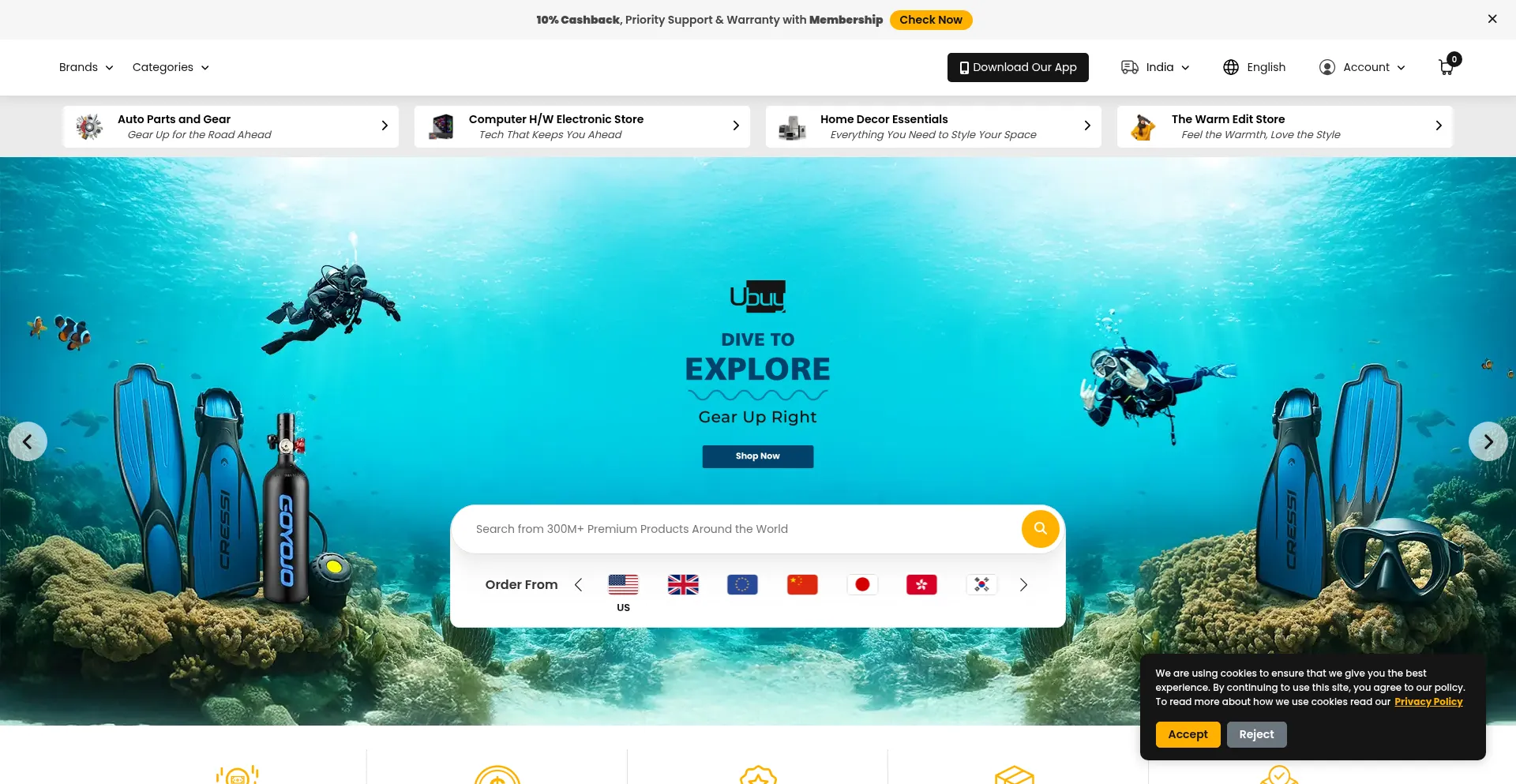 该网站实现符合GDPR或CCPA等隐私法规的cookie同意机制。这表明 ubuy.co.in 遵守数据保护标准并为用户提供对个人数据收集实践的控制。