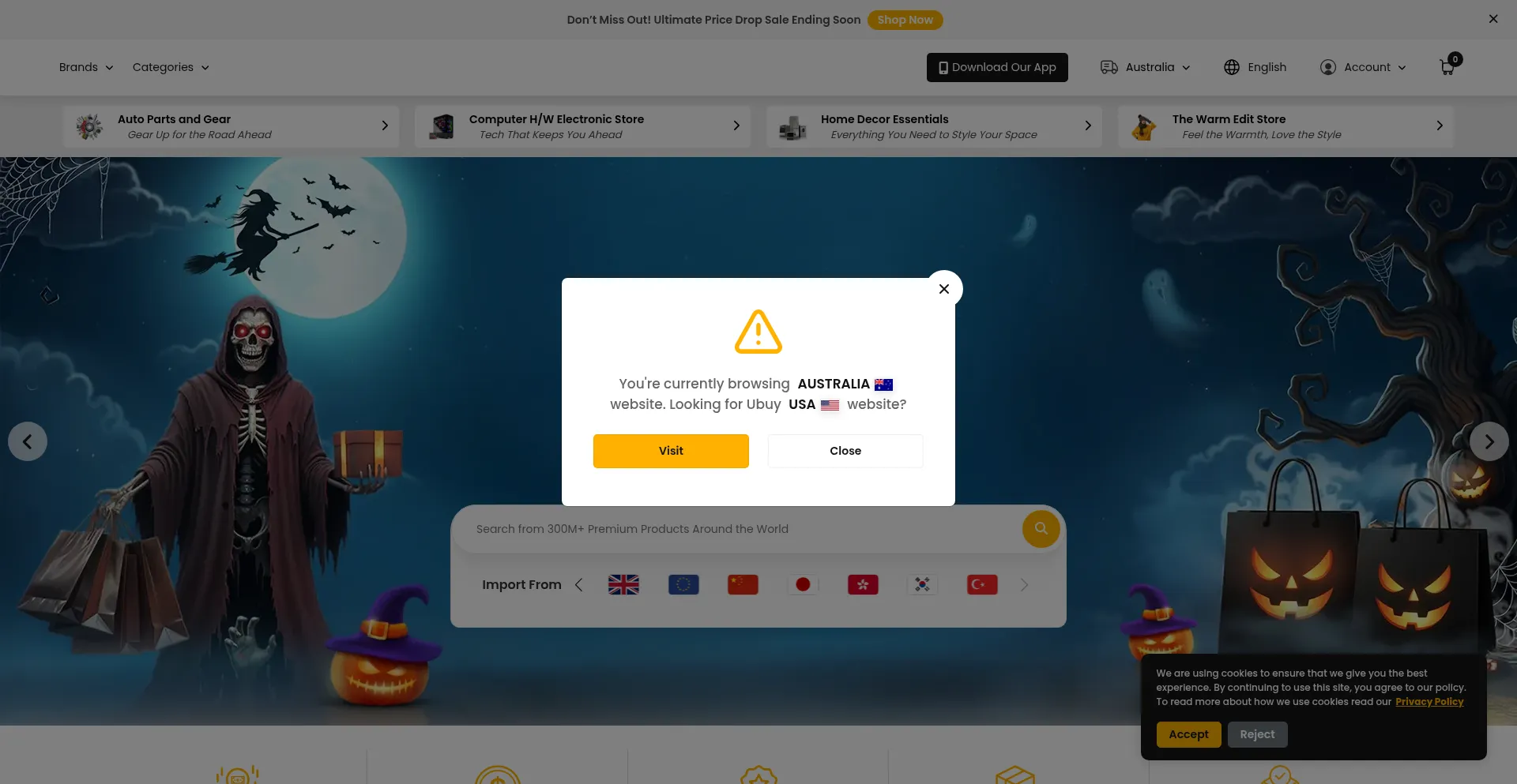 该网站实现符合GDPR或CCPA等隐私法规的cookie同意机制。这表明 ubuy.com.au 遵守数据保护标准并为用户提供对个人数据收集实践的控制。