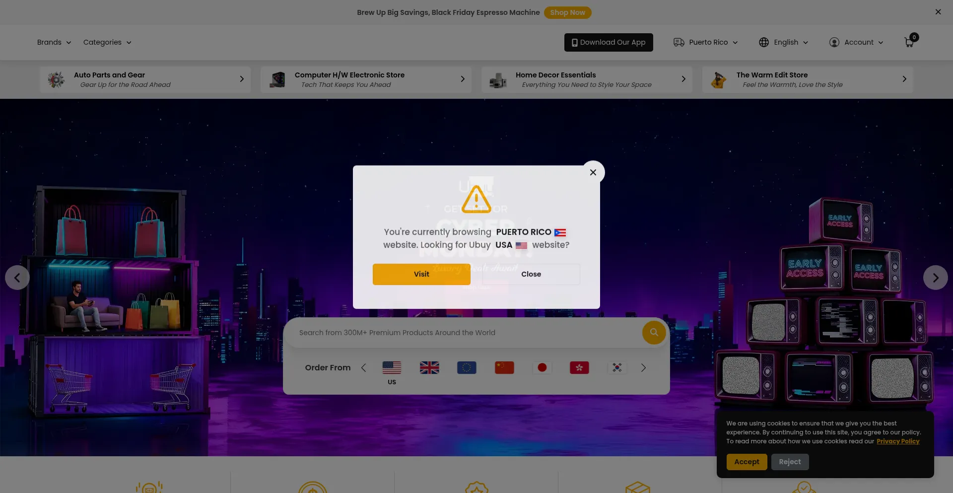 该网站实现符合GDPR或CCPA等隐私法规的cookie同意机制。这表明 ubuy.com.pr 遵守数据保护标准并为用户提供对个人数据收集实践的控制。