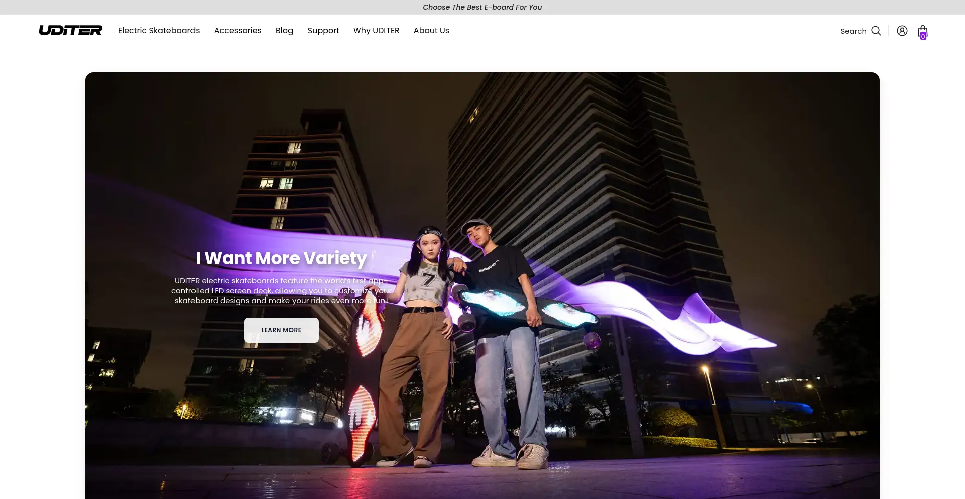 World's First DIY LED Screen Electric Skateboards!Discover UDITER's fast electric skateboards with quick-swap batteries. Change in just 5 seconds and extend your range on our mo...
