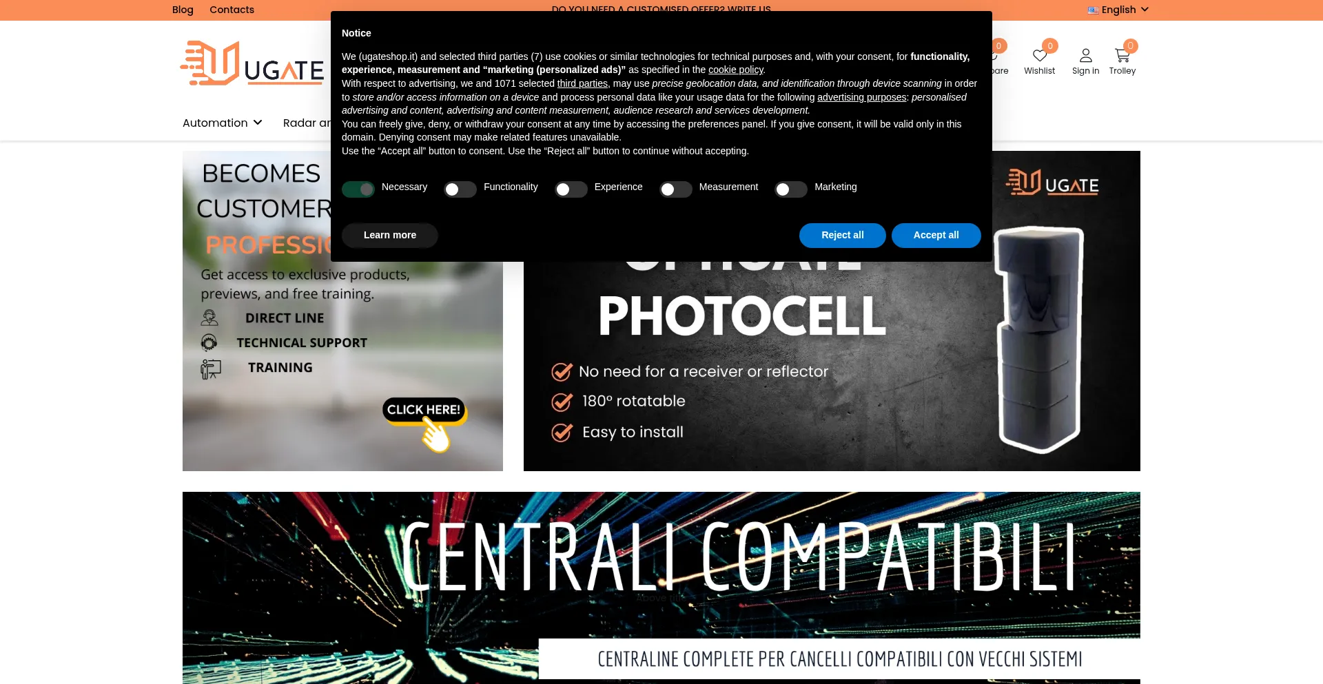 该网站实现符合GDPR或CCPA等隐私法规的cookie同意机制。这表明 ugateshop.it 遵守数据保护标准并为用户提供对个人数据收集实践的控制。