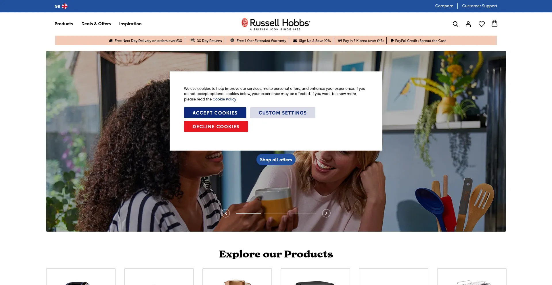 该网站实现符合GDPR或CCPA等隐私法规的cookie同意机制。这表明 uk.russellhobbs.com 遵守数据保护标准并为用户提供对个人数据收集实践的控制。