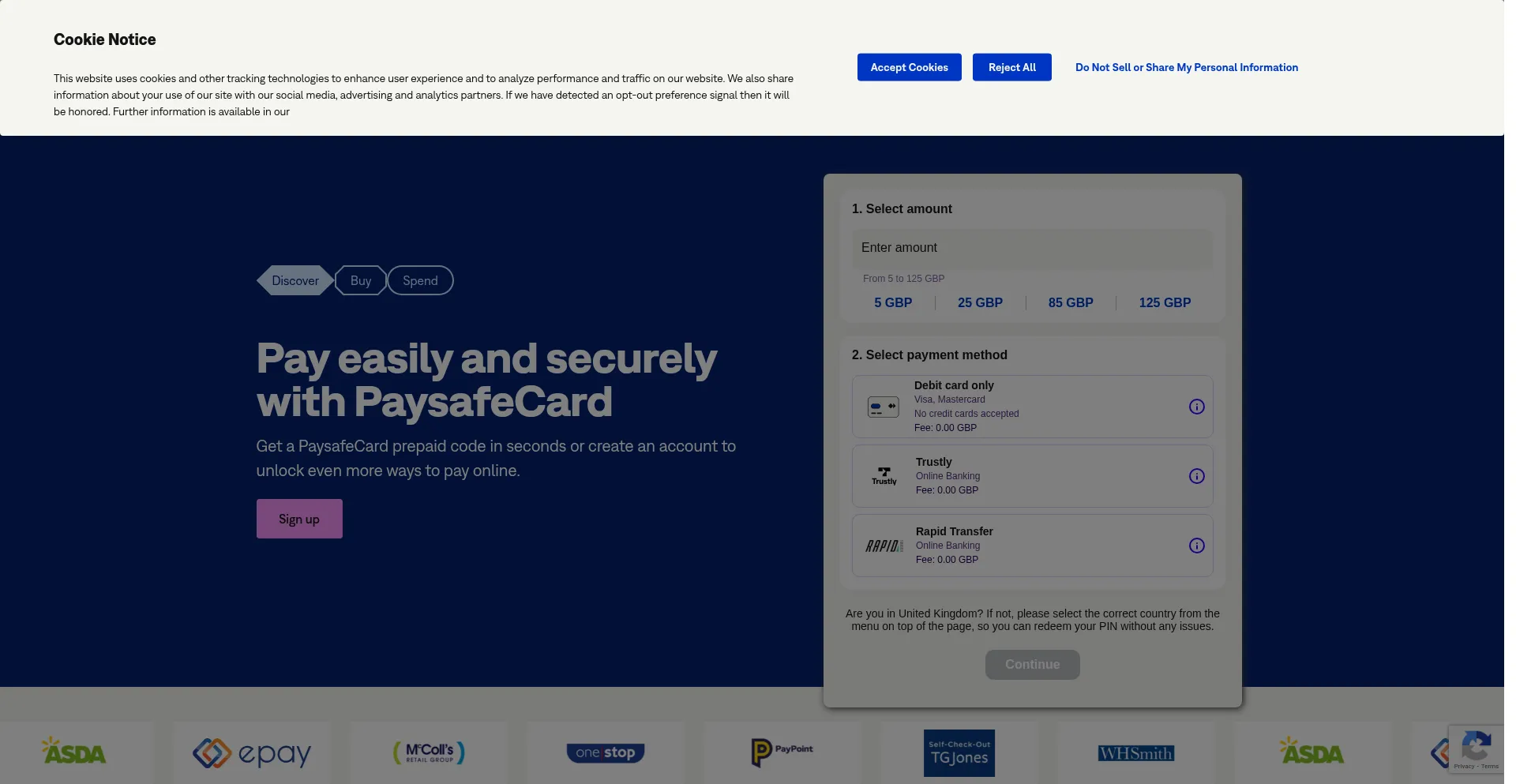 Pay securely and easily with a PaysafeCard prepaid code. Get one in over 650,000 sales outlets and pay everywhere where you see our logo.