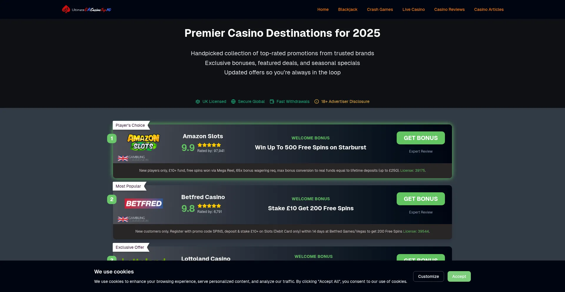 Discover the best online offers, bonuses, and deals all in one place. Save money and find top-rated promotions handpicked for you at Top Offers UK Casino.