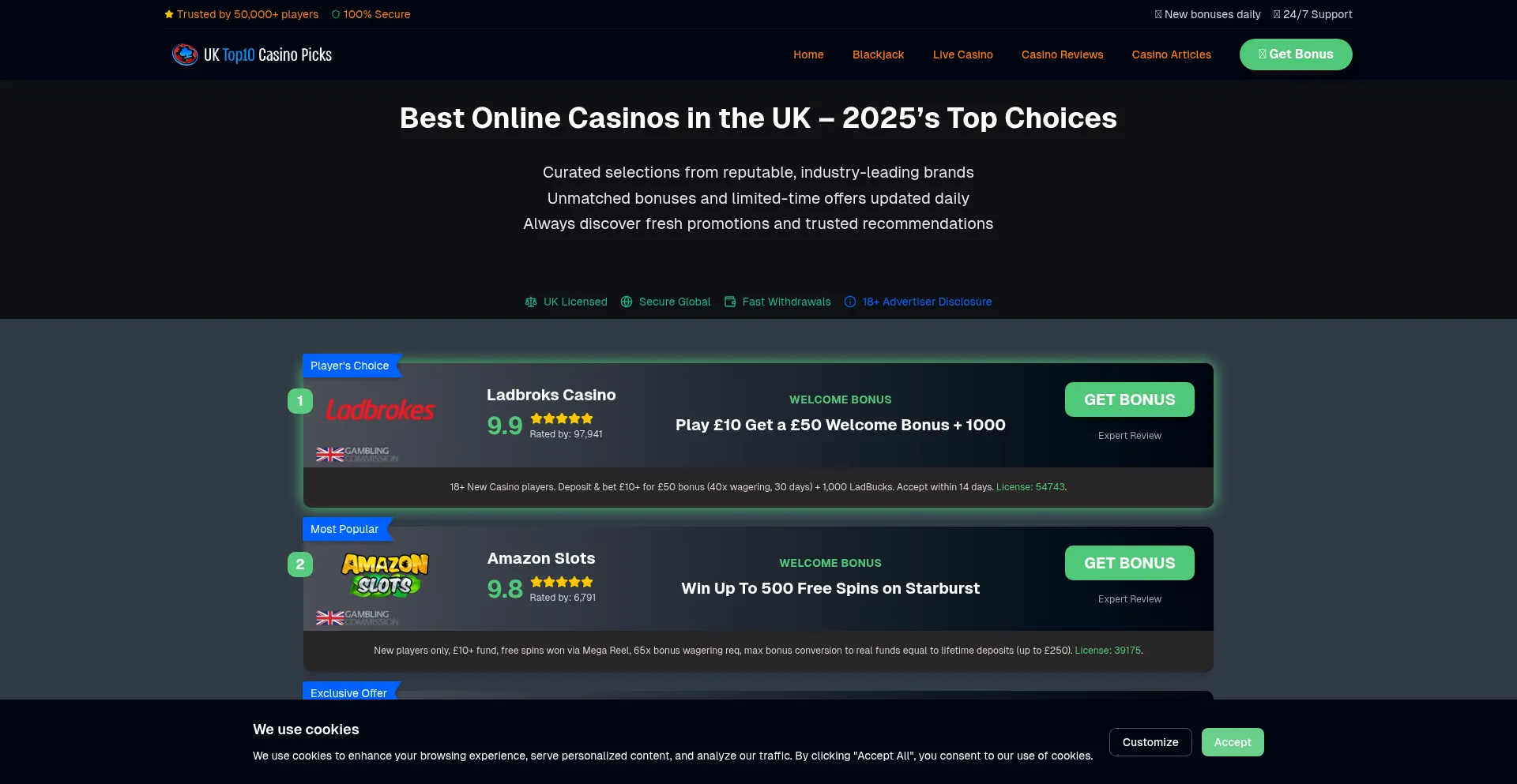 Discover the best online offers, bonuses, and deals all in one place. Save money and find top-rated promotions handpicked for you at UK Top 10Casino Picks.