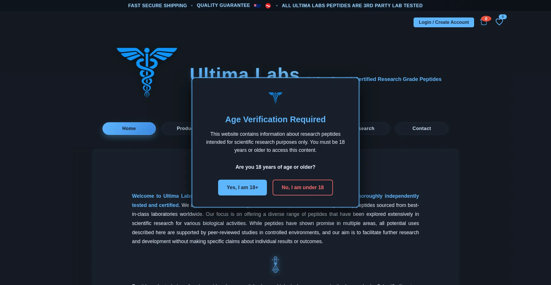 Ultima Labs - Australia's trusted source for premium, independently tested research grade peptides. High-quality peptides for scientific research with 3rd party lab testing.