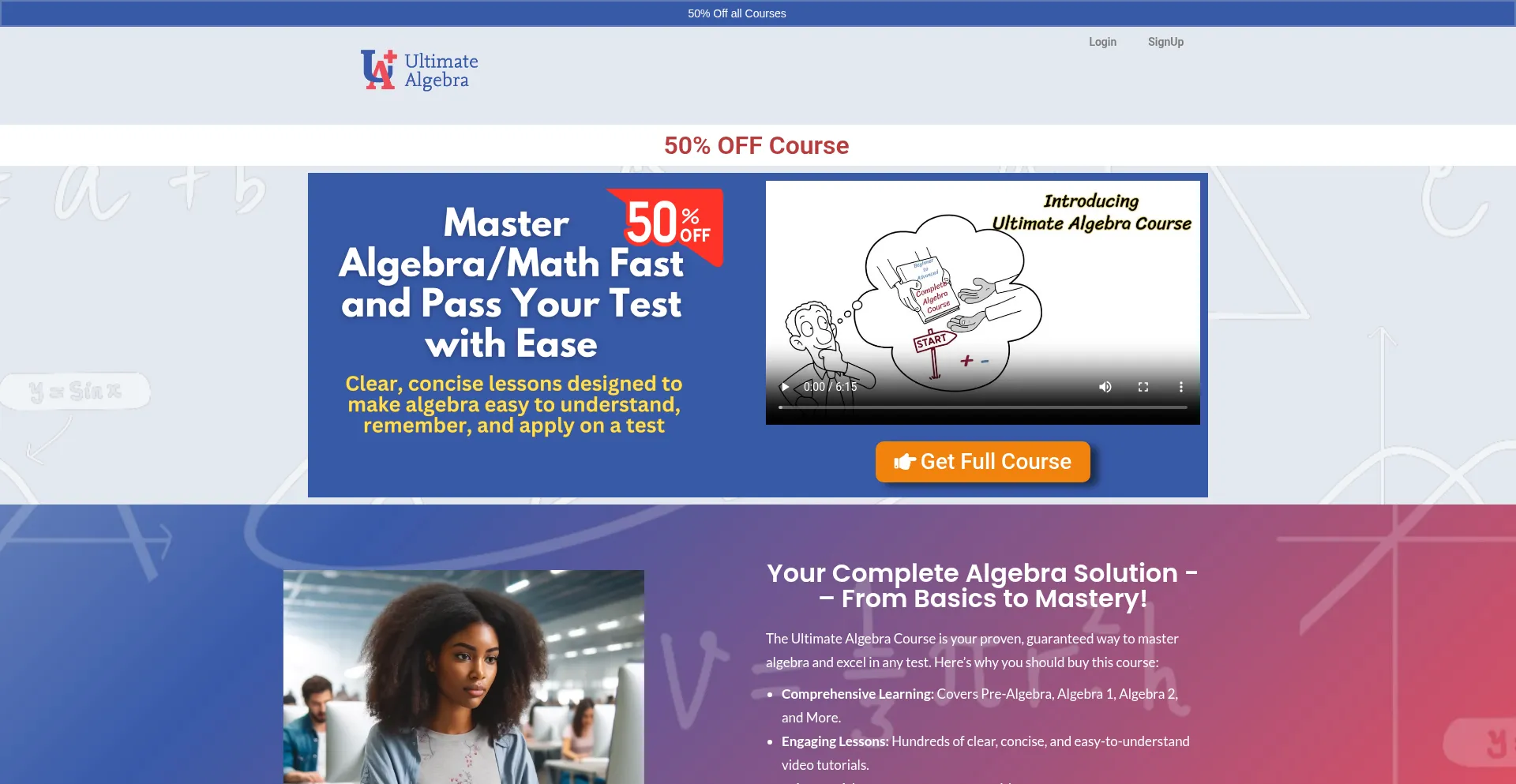 Over 800K+ users. Quality Algebra video lessons. Fastest and easiest way to master Algebra. Guaranteed to help you Pass any math test. Join Ultimate Algebra