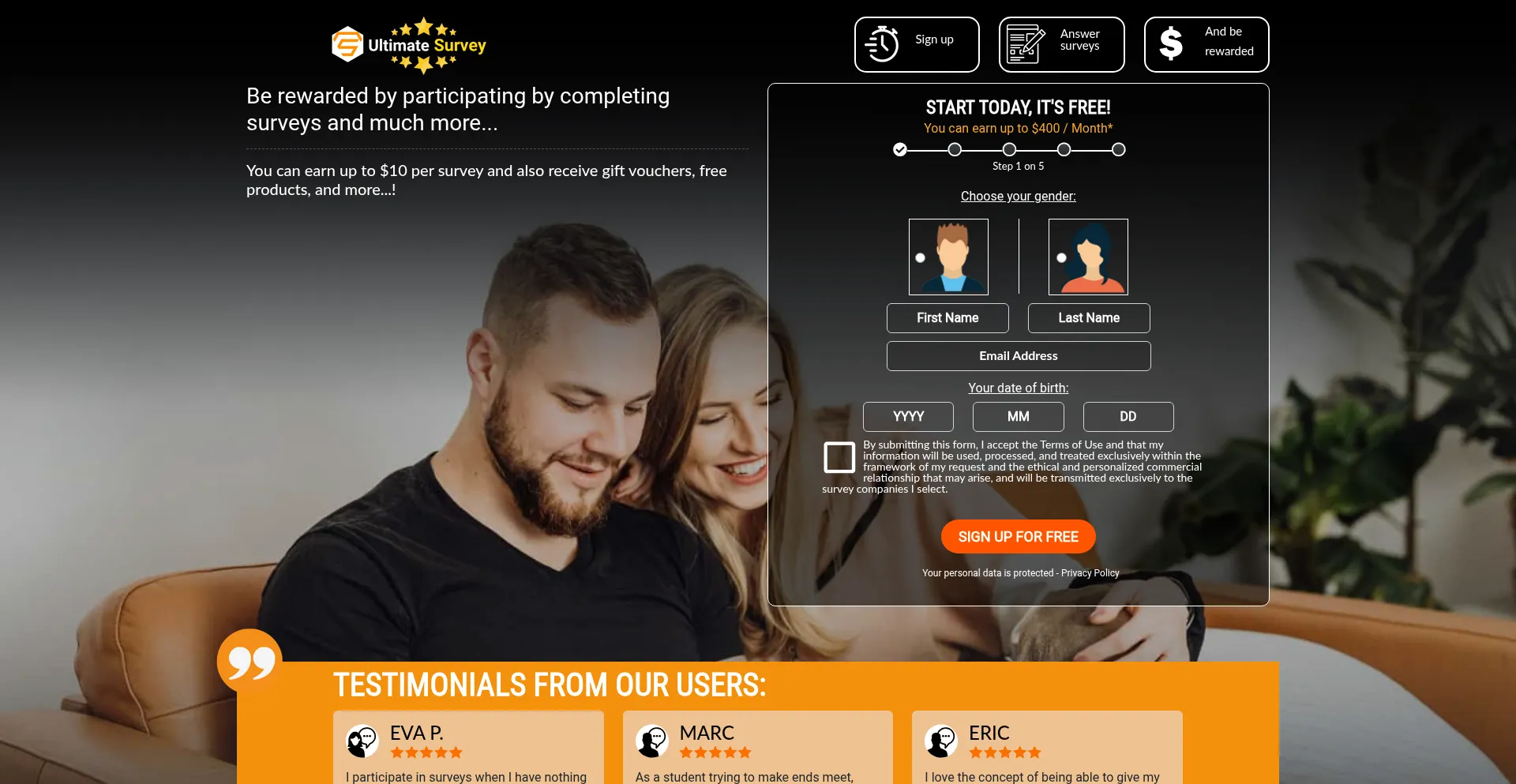 该网站实现数据收集表单,请求个人信息,包括姓名、电子邮件地址、电话号码或其他敏感详细信息。用户应验证 ultimate-surveys.net 的合法性并在提交个人数据前查看隐私政策。