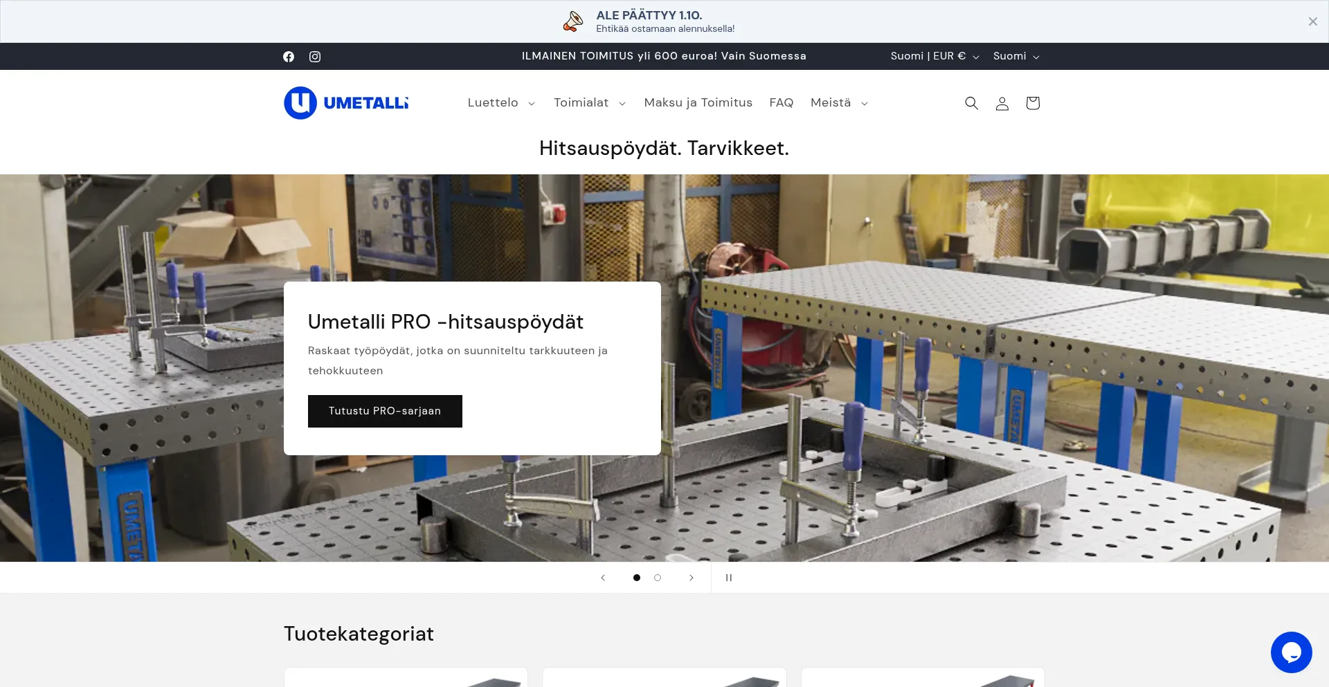 网站上存在社交媒体链接表明 umetalli.fi 在社交媒体上维护官方账户,这是可信度和参与度的积极信号。