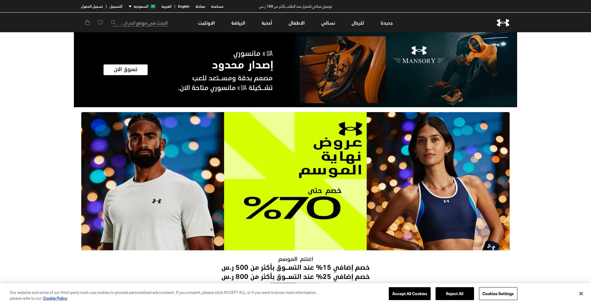 أندر آرمر السعودية | تخفيضات حتى 70% على الملابس والاحذية الرياضية والاكسسوارات