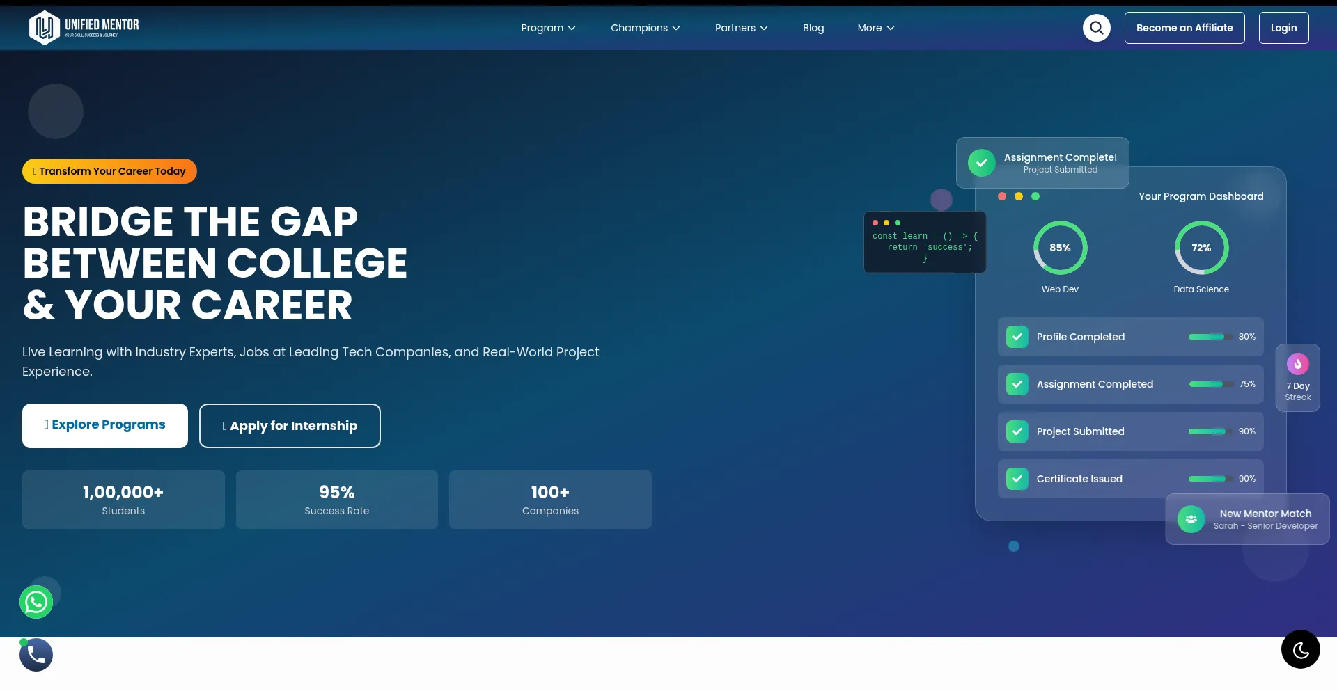 网站上存在社交媒体链接表明 unifiedmentor.com 在社交媒体上维护官方账户,这是可信度和参与度的积极信号。